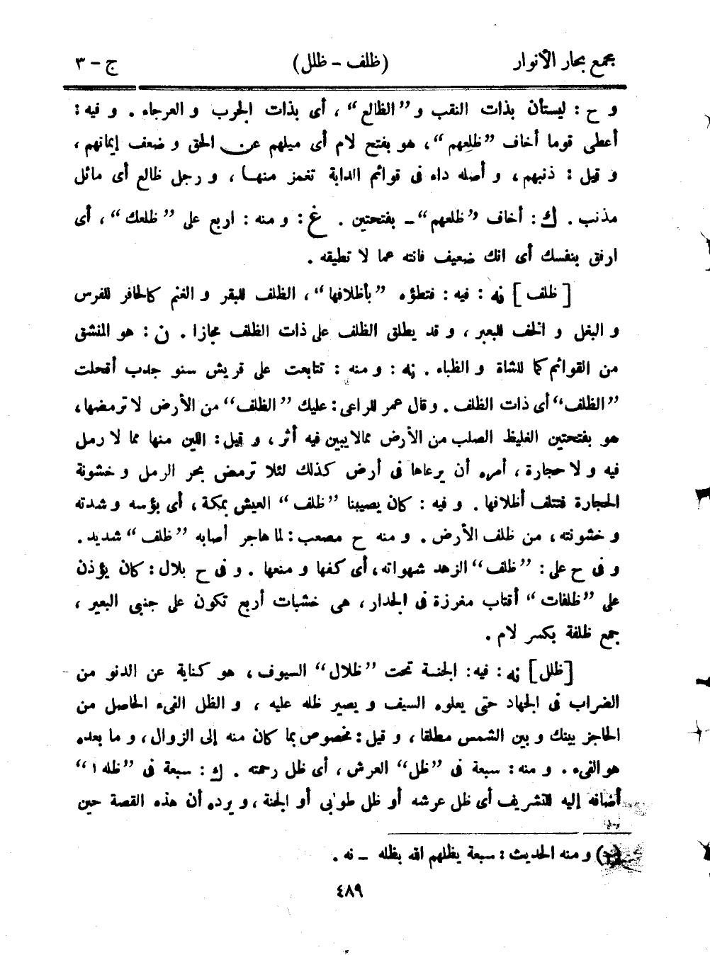 [ظلل] نه: فيه: الجنة تحت "ظلال" السيوف، هو كناية عن الدنو من الضراب في الجهاد حتى يعلوه السيف ويصير ظله عليه، والظل الفيء الحاصل من الحاجز بينك وبين الشمس مطلقًا، وقيل: مخصوص بما كان منه إلى الزوال، وما بعده هو الفيء. ومنه: سبعة في "ظل" العرش، أي ظل رحمته. ك: سبعة في "ظله" أضافه إليه للتشريف أي ظل عرشه أو ظل طوبى أو الجنة، ويرده أن هذه القصة حين