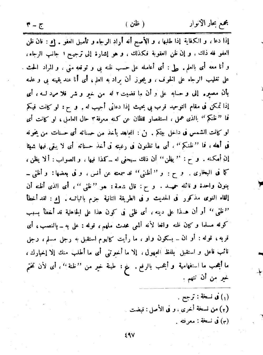 إذا دعا، والكفاية إذا طلبها، والأصح أنه أراد الرجاء وتأميل العفو. ك: فإن ظن العفو فله ذلك، وإن ظن العقوبة فكذلك، وهو إشارة على ترجيح جانب الرجاء، وأنا معه أي بالعلم. ط: أي أعامله على حسب ظنه بي وتوقعه مني، والمراد الحث على تغليب الرجاء على الخوف، ويجوز أن يراد به العلم، أي أنا عند يقينه بي وعلمه بأن مصيره إلي وحسابه علي وأن ما قضيت له من خير وشر فلا مرد له، أي إذا تمكن في مقام التوحيد قرب بي بحيث إذا دعاني أجيب له. وح: لو كانت فيكم فما "ظنكم" بالذي عمل، استقصار للظان عن كنه معرفة حال العامل، لو كانت أي لو كانت الشمس في داخل بيتكم. ن: المجاهد يأخذ من حسناته أي حسنات من يخونه في أهله، فما "ظنكم"، أي ما تظنون في رغبته في أخذ حسناته أي لا يبقى فيها شيئًا إن أمكنه. وح: "يظن" أن ذلك سيحفى له- كذا فيها، والصواب: ألا يظن، كما في البخاري. وح: و"اظنني" قد سمعته عن أنس، وفي بعضها: وأظنى- بنون واحدة وقائله حمد. وح: قال شعبة: هو "ظنى"، أي الذي أظنه أن إلقاء النوى مذكور في الحديث وفي الطريقة الثانية جزم بإثباته. ك: لقد أخطأ "ظنى" أو أن هذا على دينه، أي ظنى في كون هذا على الجاهلية قد أخطأ بسبب كونه مسلمًا وكان ظنه واقعًا لأنه ألمعي محدث ملهم، قوله: على به- بالنصب، أي قربه، قوله: أو أن- بسكوت واو، ما رأيت كاليوم استقبل به رجل مسلم، رجل نائب فاعل واستقبل بلفظ المجهول، إلا ما أخبرتني أي ما أطلب منك إلا إخبارك، ما أعجب ما استفهامية وأعجب بالرفع. غ: طينة خير من "ظنة"، أي لأن تختم خير من أن تتهم.