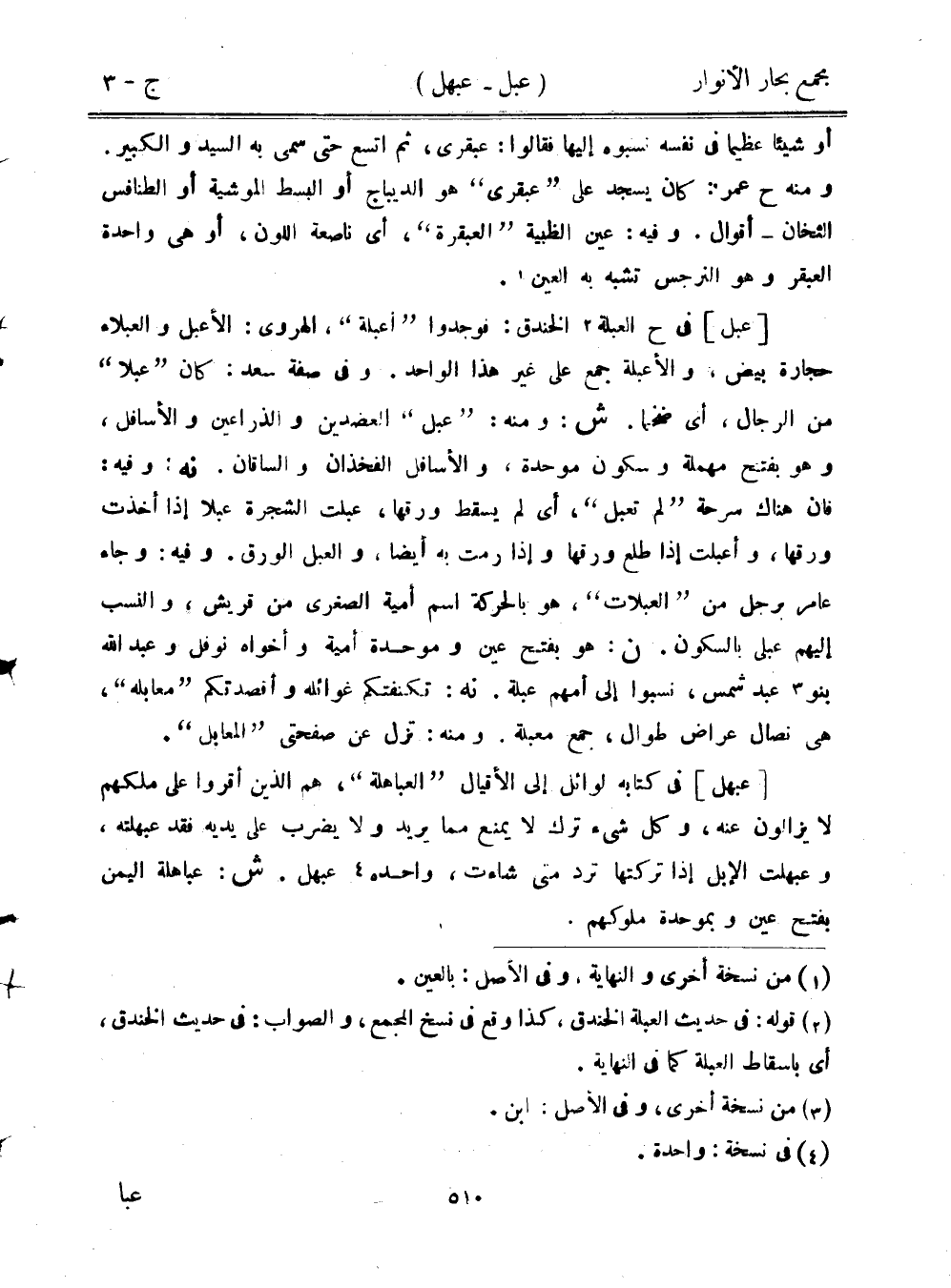 [عبهل] في كتابه لوائل إلى الأقيال "العباهلة"، هم الذين أقروا على ملكهم لا يزالون عنه، وكل شيء ترك لا يمنع مما يريد ولا يضرب على يديه فقد عبهلته، وعبهلت الإبل إذا تركتها ترد متى شاءت، واحده عبهل. ش: عباهلة اليمن بفتح عين وبموحدة ملوكهم.