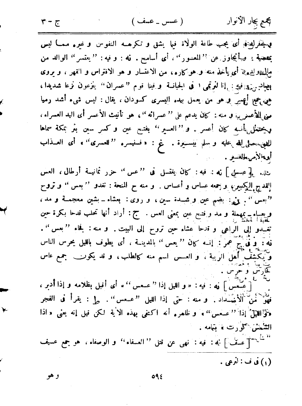 ويسر:، أي يجب طاعة الولاة فيما يشق وتكرهه النفوس وغيره مما ليس بمعصية، وأتجاوز عن "المعسور"، أي أسامح. نه: وفيه: "يعتسر" الوالد من مال ولده، أي يأخذ منه وهو كاره، من الاعتسار وهو الافتراس ولاقهر، ويروى يصاد. وفيه: إنا لنرتمي في الجبانة وفينا قوم "عسران" ينزعون نزعًا شديدًا، هو جمع أعسر وهو من يعمل بيده اليسرى كسودان، يقال: ليس شيء أشد رميًا من الأعسر ومنه: كان يدعم على "عسرائه"، هو تأنيث الأعسر أي اليد العسراء، ويحتمل أنه كان أعسر. و"العسير" بفتح عين وكسر سين بئر بمكة سماها النبي صلى الله عليه وسلم بيسيرة. غ: "فسنيسره "للعسرى"" أي العذاب أو بالأمر العسير.