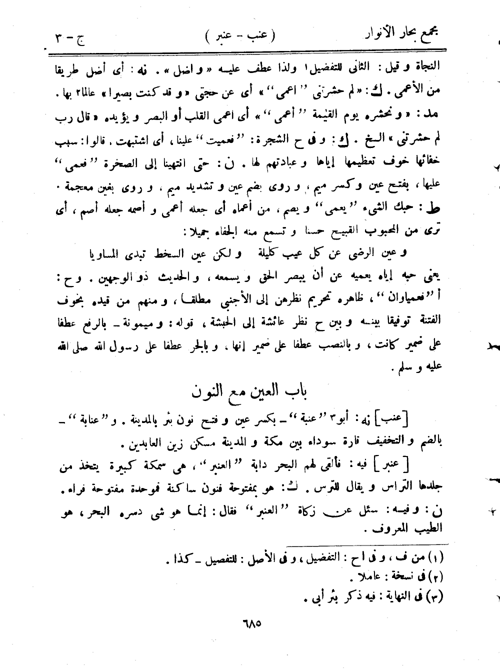 النجاة وقيل: الثاني للتفضيل ولذا عطف عليه "وأضل". نه: أي أضل طريقًا من الأعمى. ك: "لم حشرتني "أعمى"" أي عن حجتي "وقد كنت بصيرا" عالمًا بها. مد: "ونحشره يوم القيامة "أعمى"" أي أعمى القلب أو البصر ويؤيده "قال رب لم حشرتني" إلخ. ك: وفي ح الشجرة: "فعميت" علينا، أي اشتبهت، قالوا: سبب خفائها خوف تعظيمها إياها وعبادتهم لها. ن: حتى انتهينا إلى الصخرة "فعمي" عليها، بفتح عين وكسر ميم، وروى بضم عين وتشديد ميم، وروى بغين معجمة. ط: حبك الشيء "يعمى" ويصم، من أعماه أي جعله أعمى وأصمه جعله أصم، أي ترى من المحبوب القبيح حسنًا وتسمع منه الجفاء جميلًا: