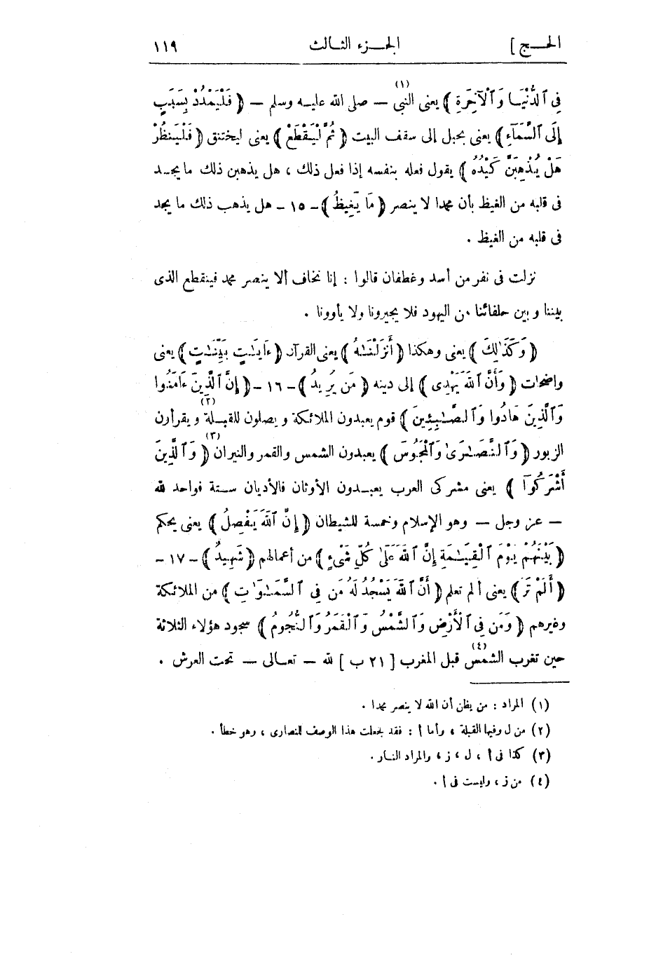 (1) المراد: من يظن أن الله لا ينصر محمدا. [.....]
