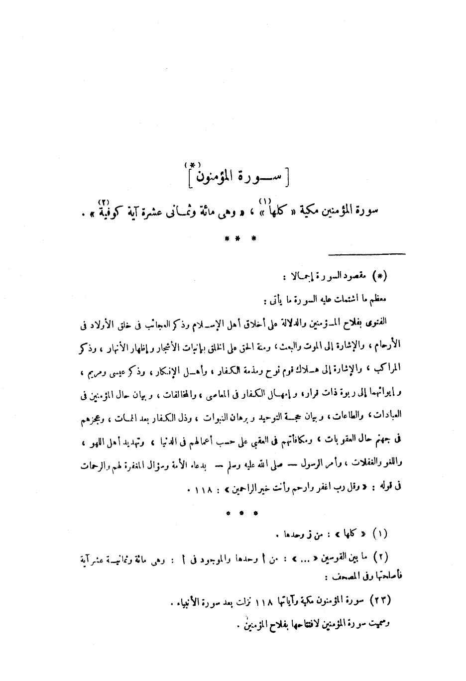 سورة المؤمنون «1» سورة المؤمنين مكية «كلها» «2» ، «وهي مائة وثماني عشرة آية كوفية «3»