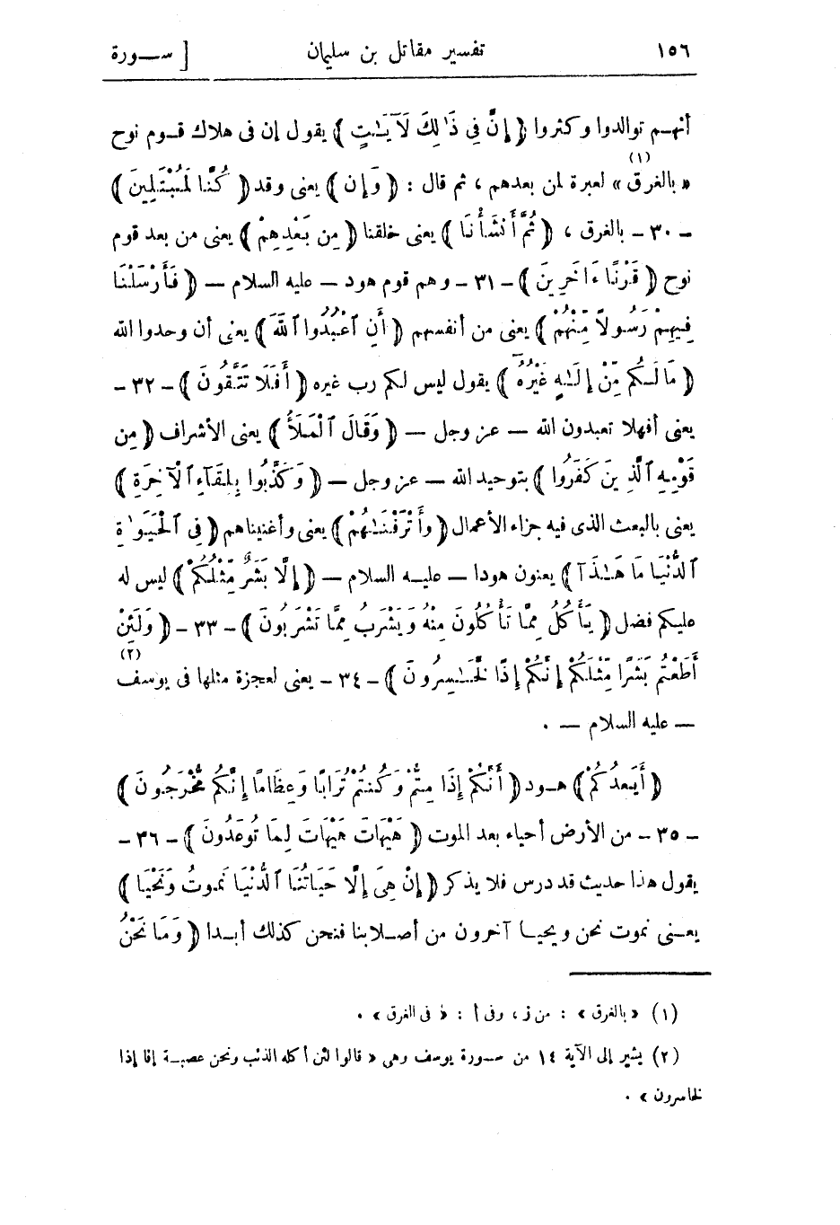 أَيَعِدُكُمْ هود أَنَّكُمْ إِذا مِتُّمْ وَكُنْتُمْ تُراباً وَعِظاماً أَنَّكُمْ مُخْرَجُونَ- 35- من الأرض أحياء بعد الموت هَيْهاتَ هَيْهاتَ لِما تُوعَدُونَ- 36- يقول هذا حديث قد درس فلا يذكر إِنْ هِيَ إِلَّا حَياتُنَا الدُّنْيا نَمُوتُ وَنَحْيا يعني نموت نحن ويحيا آخرون من أصلابنا فنحن كذلك أبدا وَما نَحْنُ بِمَبْعُوثِينَ- 37-