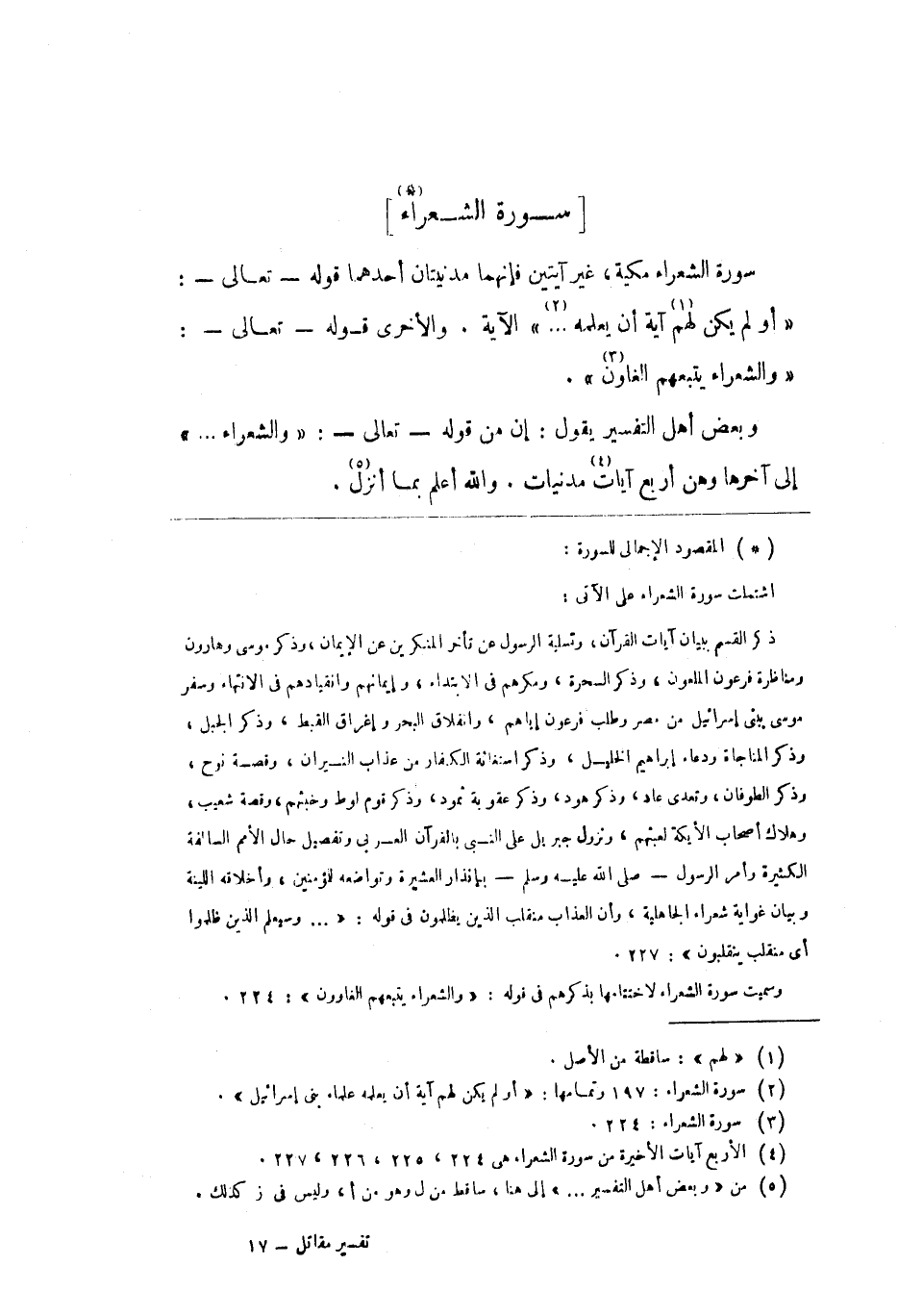 (5) الأربع آيات الأخيرة من سورة الشعراء هي 224، 225، 226، 227.