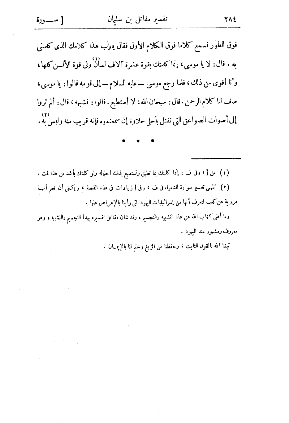 وما أغنى كتاب الله عن هذا التشبيه والتجسيم، وقد شان مقاتل تفسيره بهذا التجسيم والتشبيه، وهو معروف ومشهور عند اليهود.