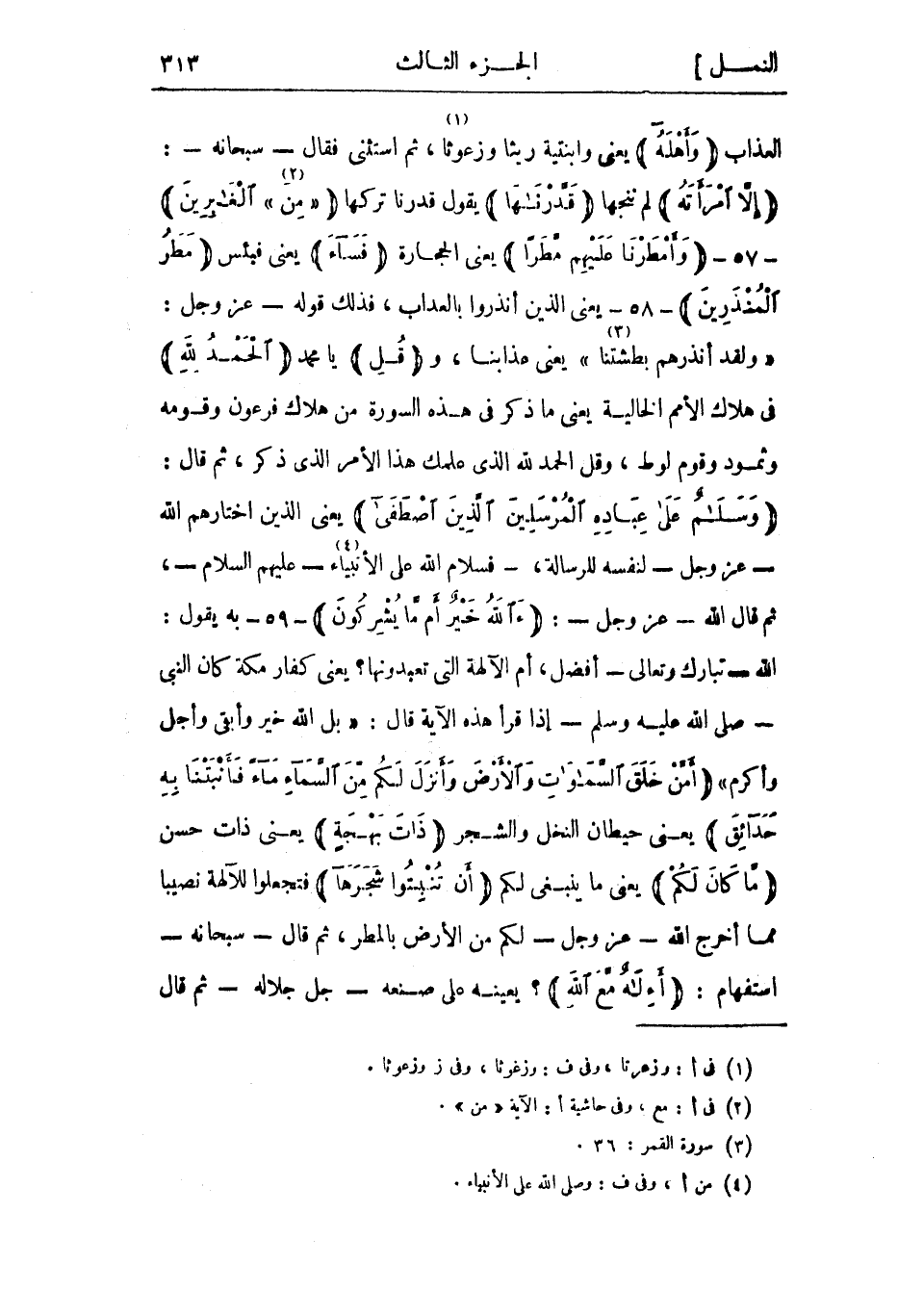 «وَلَقَدْ أَنْذَرَهُمْ بَطْشَتَنا» «3» يعنى عذابنا، وقُلِ يا محمد الْحَمْدُ لِلَّهِ في هلاك الأمم الخالية يعني ما ذكر في هذه السورة من هلاك فرعون وقومه وثمود وقوم لوط، وقل الحمد لله الذي علمك هذا الأمر الذي ذكر، ثم قال: