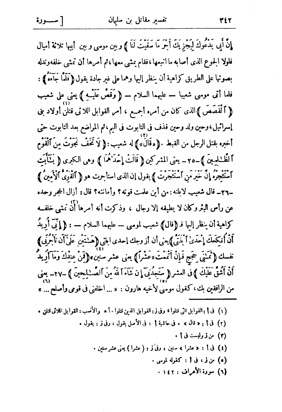 فلما أتى موسى شعيبا- عليهما السلام- وَقَصَّ عَلَيْهِ يعني على شعيب الْقَصَصَ الذي كان من أمره أجمع، أمر القوابل اللائي قتلن «1» أولاد بني إسرائيل، وحين ولد وحين قذف في التابوت في اليم، ثم المراضع بعد التابوت حتى أخبره بقتل الرجل من القبط. «قالَ» «2» له شعيب: لا تَخَفْ نَجَوْتَ مِنَ الْقَوْمِ الظَّالِمِينَ- 25- يعني المشركين قالَتْ إِحْداهُما وهي الكبرى يَا أَبَتِ اسْتَأْجِرْهُ إِنَّ خَيْرَ مَنِ اسْتَأْجَرْتَ يقول إن الذي استأجرت هو الْقَوِيُّ الْأَمِينُ- 26- قال شعيب لابنته: من أين علمت قوته؟ وأمانته؟ قال: أزال الحجر وحده عن رأس البئر وكان لا يطيقه إلا رجال، وذكرت أنه أمرها «3» أن تمشي خلفه كراهية أن ينظر إليها ف قالَ شعيب لموسى- عليهما السلام-: إِنِّي أُرِيدُ أَنْ أُنْكِحَكَ إِحْدَى ابْنَتَيَّ يعني أن أزوجك إحدى ابنتي هاتَيْنِ عَلى أَنْ تَأْجُرَنِي نفسك ثَمانِيَ حِجَجٍ فَإِنْ أَتْمَمْتَ «عَشْراً يعني عشر سنين» «4» فَمِنْ عِنْدِكَ وَما أُرِيدُ أَنْ أَشُقَّ عَلَيْكَ في العشر سَتَجِدُنِي إِنْ شاءَ اللَّهُ مِنَ الصَّالِحِينَ- 27- يعني من الرافقين بك، كقول مُوسَى «5» لأَخِيهِ هَارُونَ: « ... اخْلُفْنِي فِي قَوْمِي وَأَصْلِحْ ... » «6»