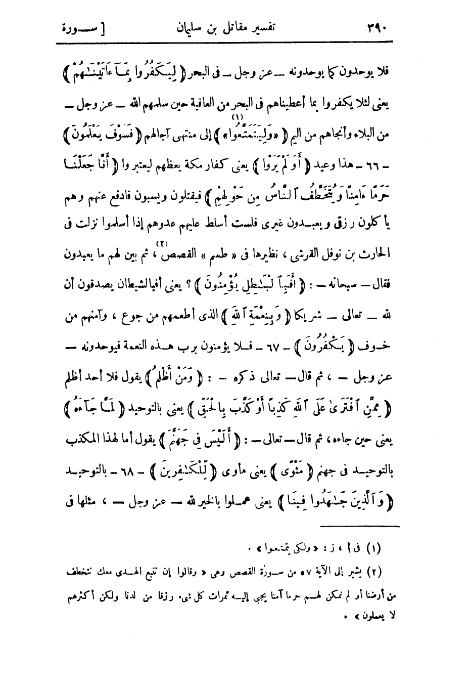 (2) يشير إلى الآية 57 من سورة القصص وهي وَقالُوا إِنْ نَتَّبِعِ الْهُدى مَعَكَ نُتَخَطَّفْ مِنْ أَرْضِنا أَوَلَمْ نُمَكِّنْ لَهُمْ حَرَماً آمِناً يُجْبى إِلَيْهِ ثَمَراتُ كُلِّ شَيْءٍ رِزْقاً مِنْ لَدُنَّا وَلكِنَّ أَكْثَرَهُمْ لا يَعْلَمُونَ» .