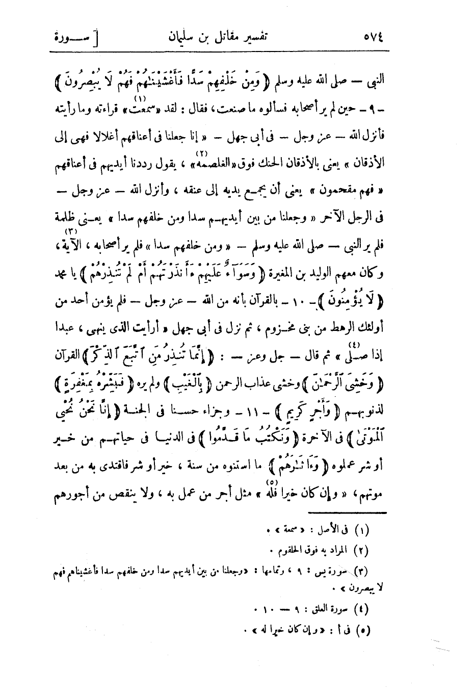 (3) سورة يس: 9، وتمامها: «وَجَعَلْنا مِنْ بَيْنِ أَيْدِيهِمْ سَدًّا وَمِنْ خَلْفِهِمْ سَدًّا فَأَغْشَيْناهُمْ فَهُمْ لا يُبْصِرُونَ» .