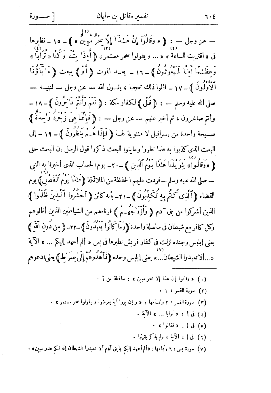 (7) سورة يس: 60 وتمامها: «أَلَمْ أَعْهَدْ إِلَيْكُمْ يَا بَنِي آدَمَ أَنْ لا تَعْبُدُوا الشَّيْطانَ إِنَّهُ لَكُمْ عَدُوٌّ مُبِينٌ» .