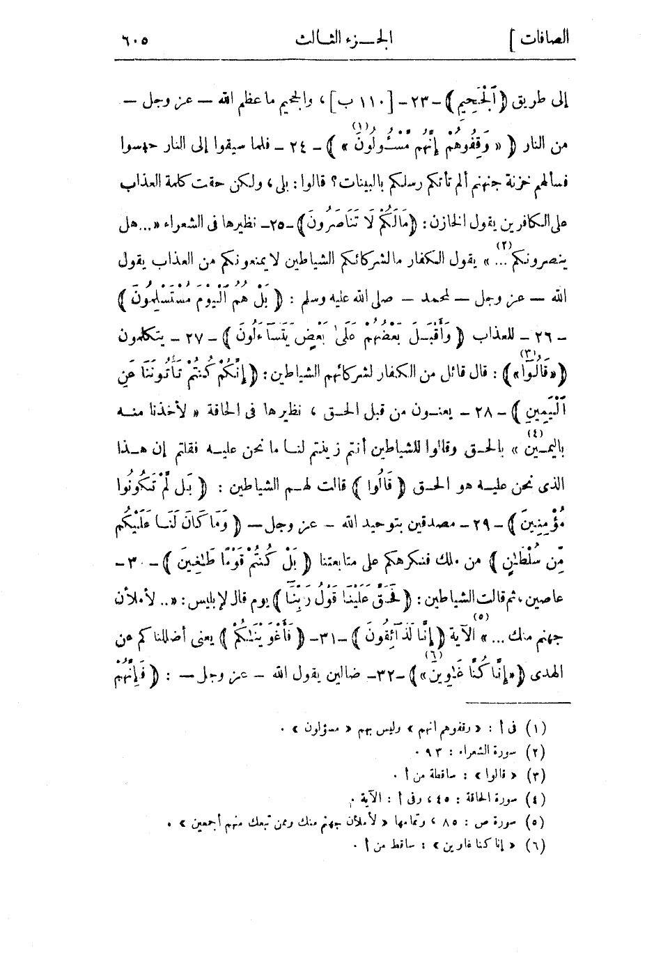 (5) سورة ص: 85، وتمامها «لَأَمْلَأَنَّ جَهَنَّمَ مِنْكَ وَمِمَّنْ تَبِعَكَ مِنْهُمْ أَجْمَعِينَ» .