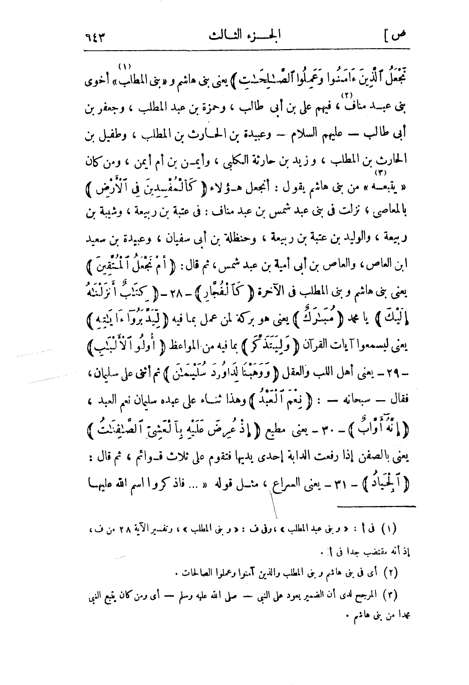 (1) فى ا: «وبنى عبد المطلب» ، وفى ف: «وبنى المطلب» ، وتفسير الآية 28 من ف، إذ أنه مقتضب جدا فى ا.