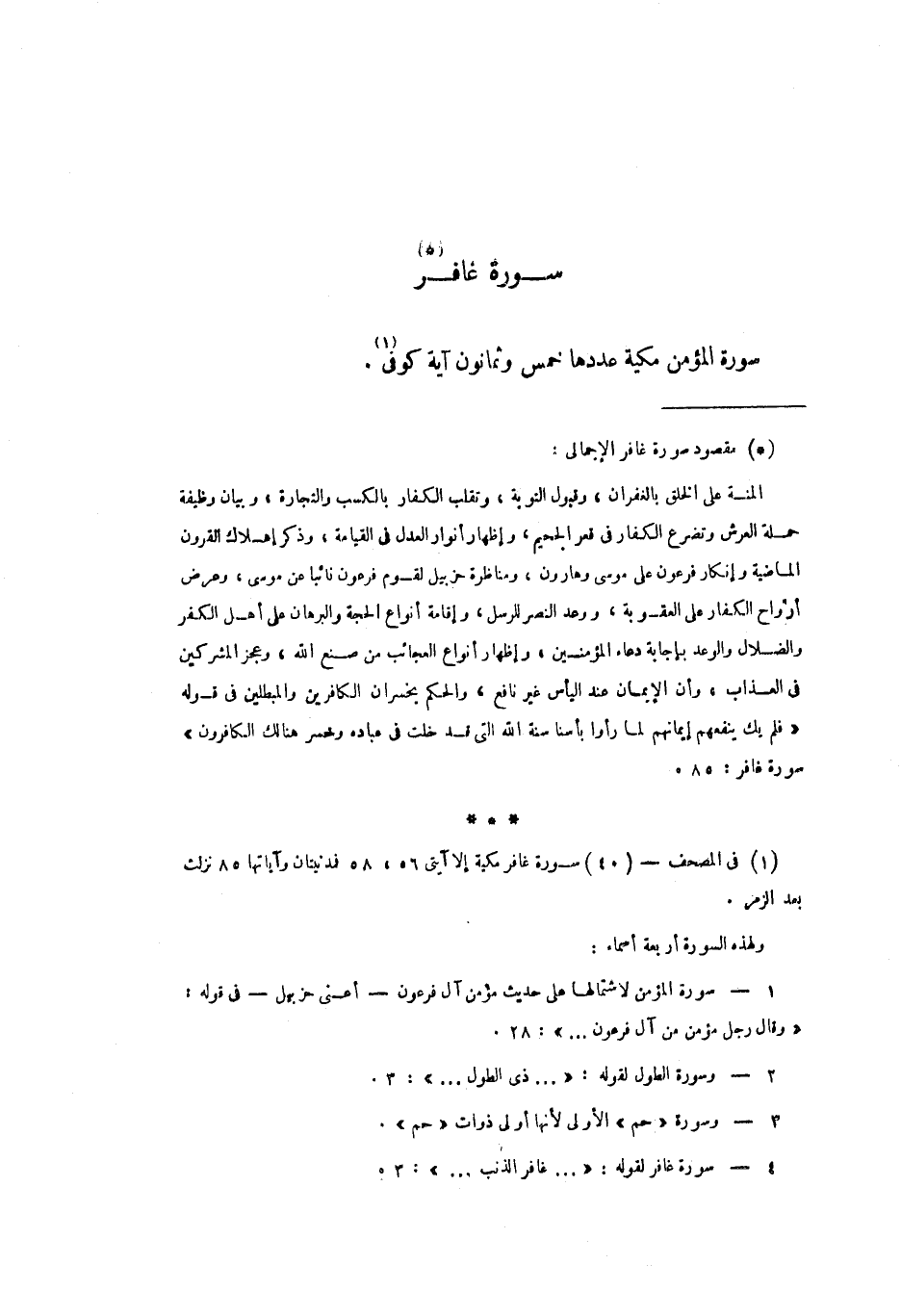 (2) فى المصحف- (40) سورة غافر مكية إلا آيتي 56، 58 فمدنيتان وآياتها 85 نزلت بعد الزمر.