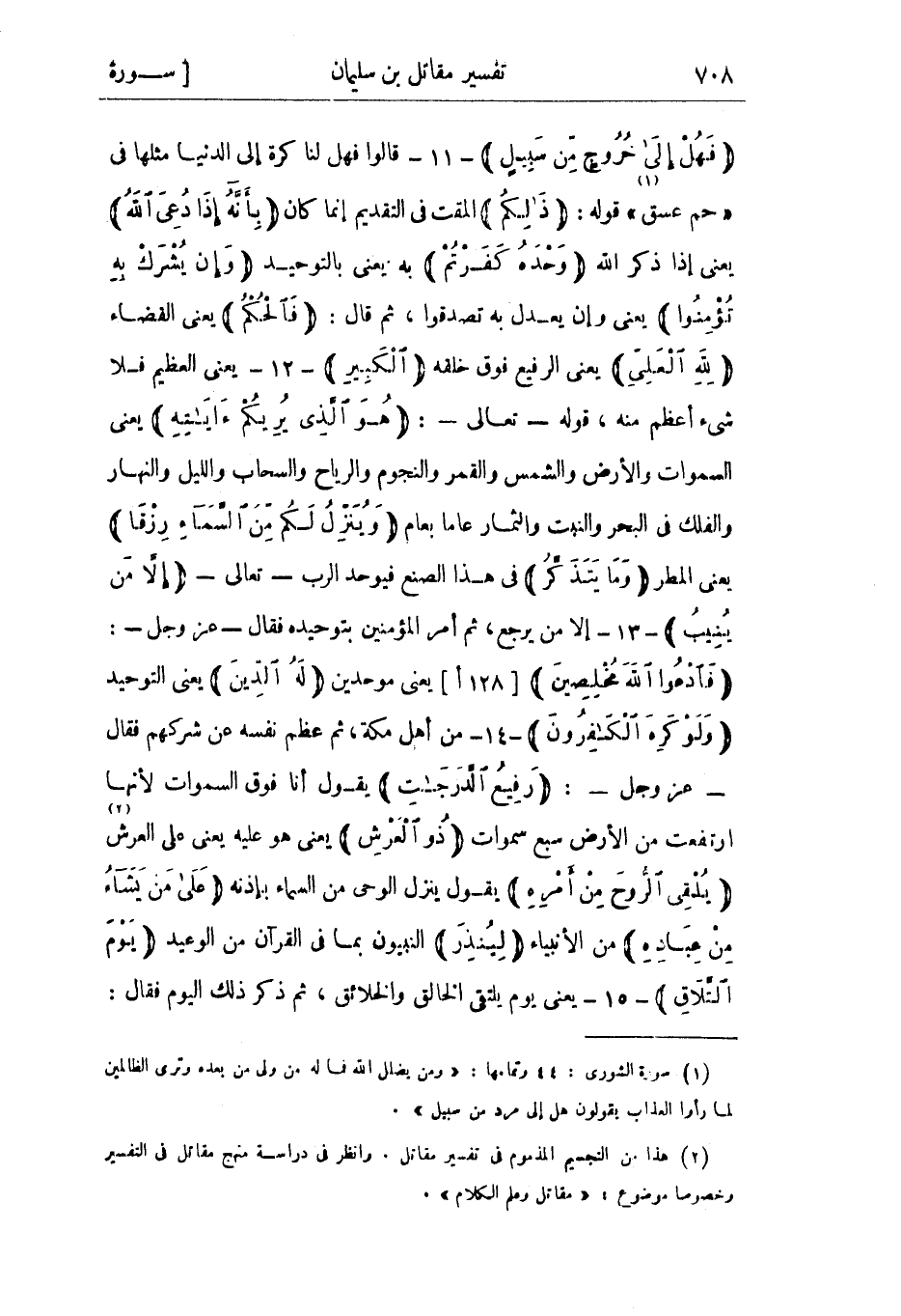 (2) هذا من التجسيم المذموم فى تفسير مقاتل. وانظر فى دراسة منهج مقاتل فى التفسير وخصوصا موضوع: «مقاتل وعلم الكلام» .