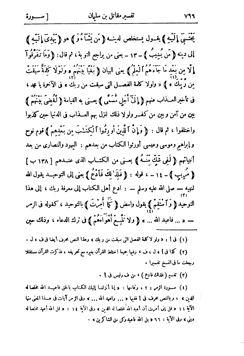 (4) سورة الزمر: 2، وتمامها: «إِنَّا أَنْزَلْنا إِلَيْكَ الْكِتابَ بِالْحَقِّ فَاعْبُدِ اللَّهَ مُخْلِصاً لَهُ الدِّينَ» ، وبالنص محرف فى أففيها « ... واعبد الله ... » وفى الزمر آيات فى هذا المعنى منها الآية 11 «قُلْ إِنِّي أُمِرْتُ أَنْ أَعْبُدَ اللَّهَ مُخْلِصاً لَهُ الدِّينَ» وفى الآية 14: «قُلِ اللَّهَ أَعْبُدُ مُخْلِصاً لَهُ دِينِي» وفى الآية: 66 «بَلِ اللَّهَ فَاعْبُدْ وَكُنْ مِنَ الشَّاكِرِينَ» .