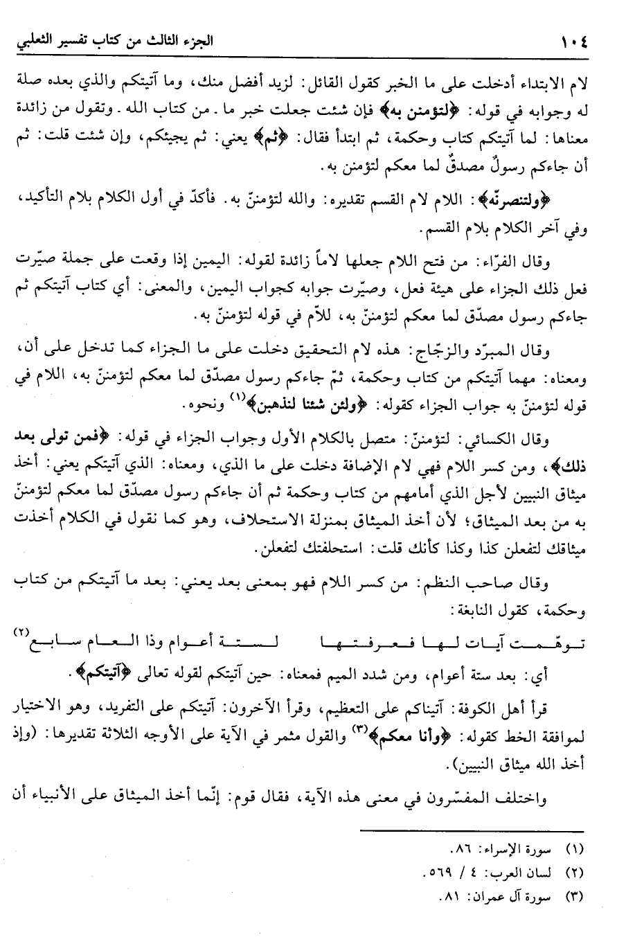 كتاب تفسير الثعلبي = الكشف والبيان عن تفسير القرآن (اسم الجزء: 3)