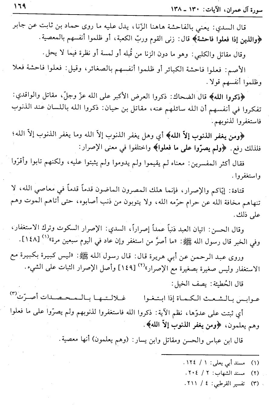 أي ثبتت على عدوّها، نظم الآية: ذَكَرُوا اللَّهَ فَاسْتَغْفَرُوا لِذُنُوبِهِمْ ... وَلَمْ يُصِرُّوا عَلى ما فَعَلُوا وَهُمْ يَعْلَمُونَ ... ، وَمَنْ يَغْفِرُ الذُّنُوبَ إِلَّا اللَّهُ.