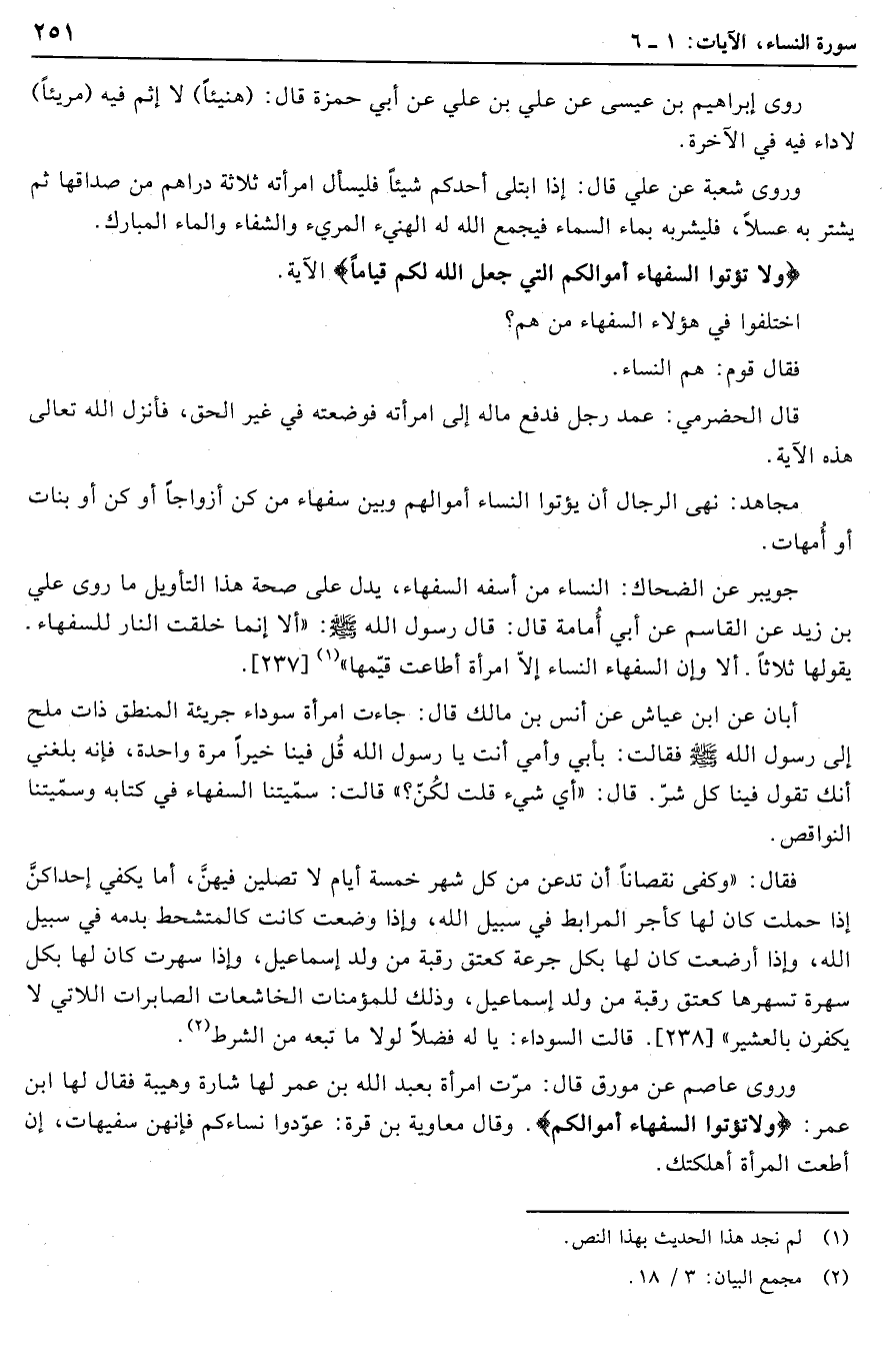 جويبر عن الضحاك: النساء من أسفه السفهاء، يدل على صحة هذا التأويل ما