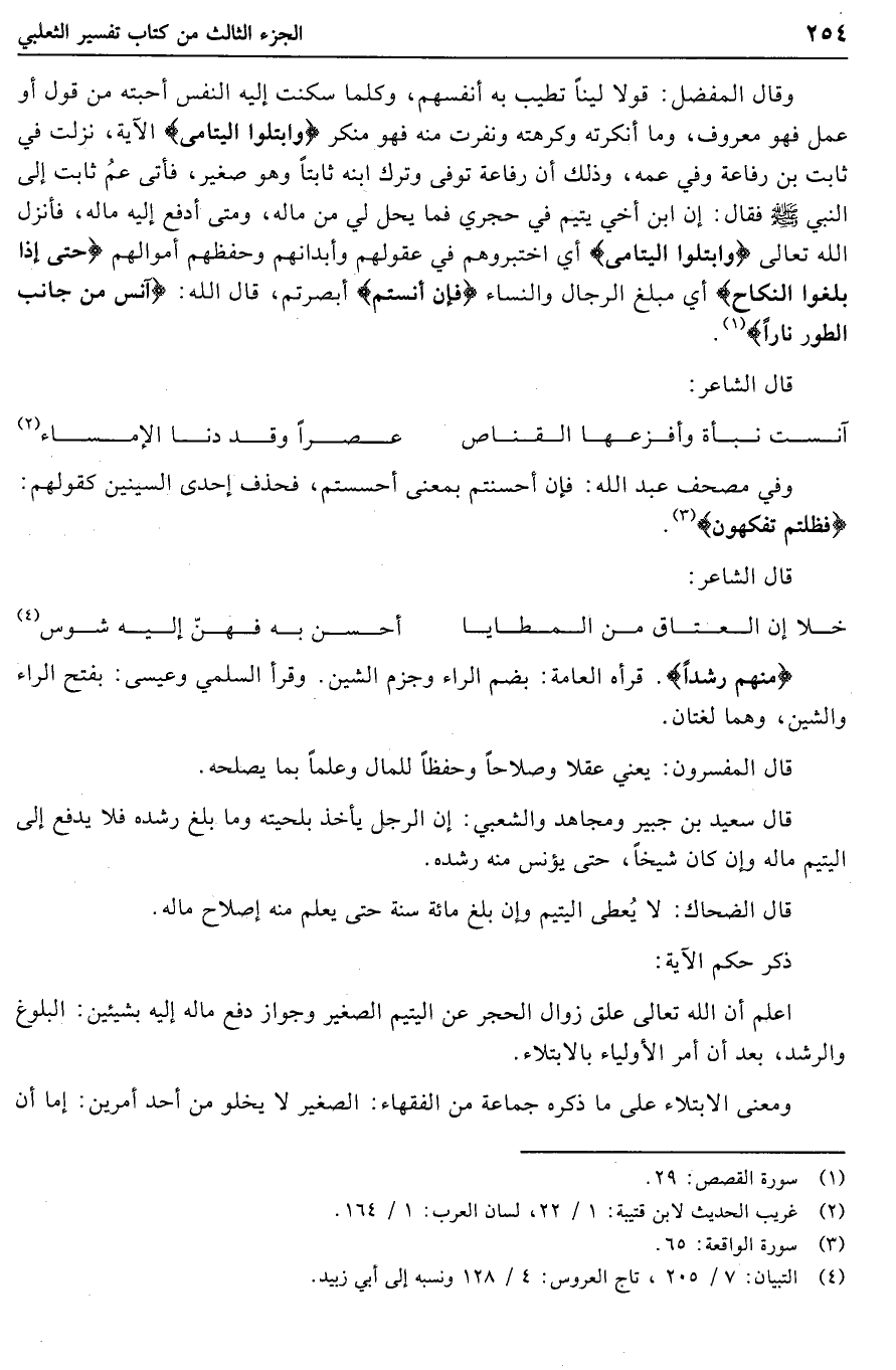 (4) التبيان: 7/ 205، تاج العروس: 4/ 128 ونسبه إلى أبي زبيد.