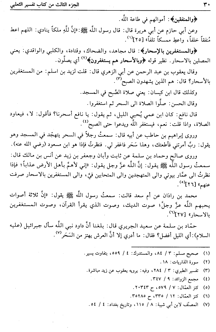 وقال يعقوب بن عبد الرحمن عن أبي الزهري قال: قلت لزيد بن اسلم: من الْمُسْتَغْفِرِينَ بِالْأَسْحارِ؟ قال: هم الذين يشهدون الصبح «3» .