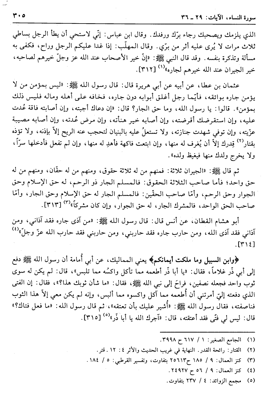 وقد قال النبي صلّى الله عليه وسلّم: «إنّ خير الأصحاب عند الله عز وجلّ خيرهم لصاحبه، خير الجيران عند الله خيرهم لجاره» «1» [312] .