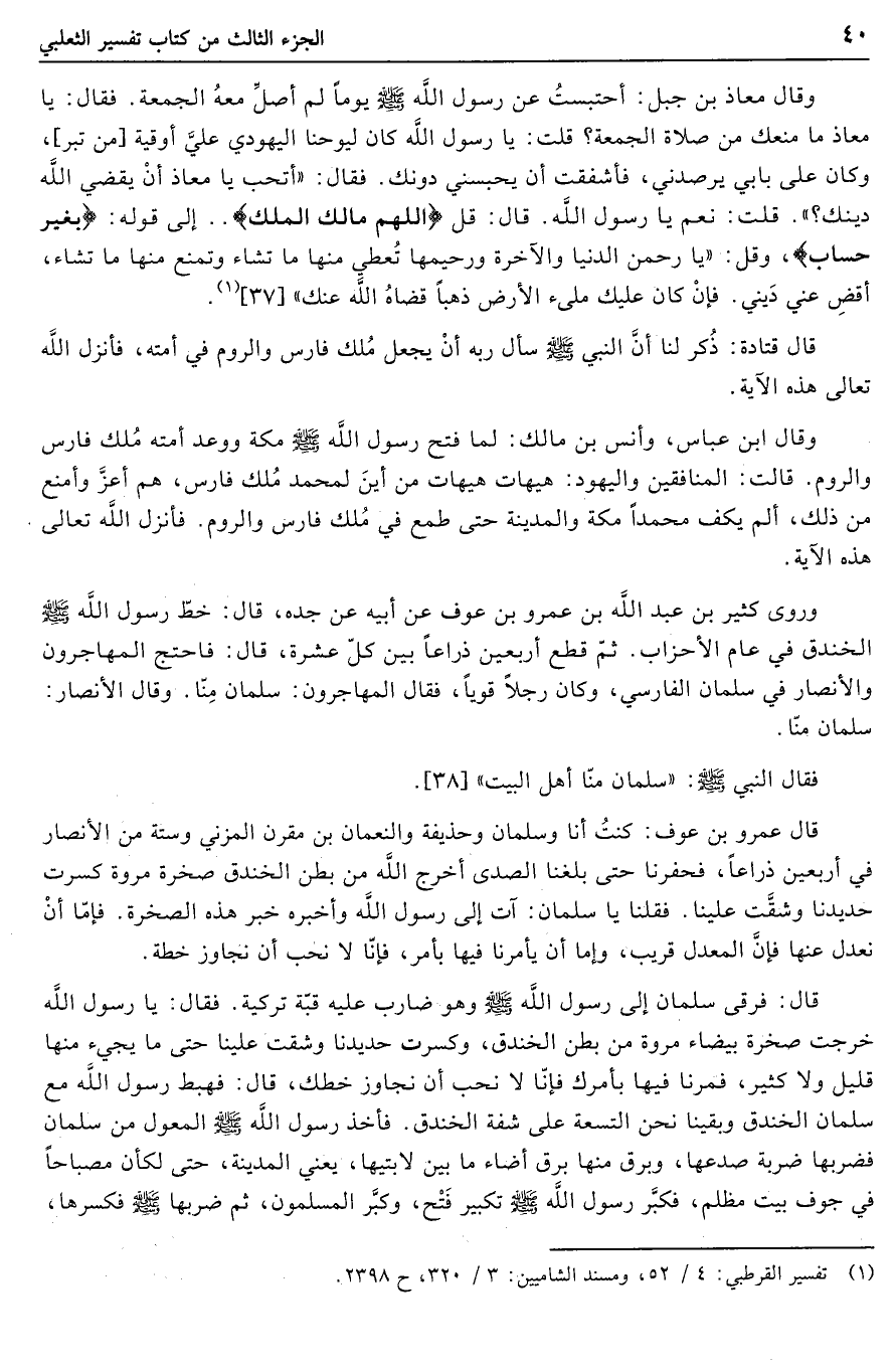 (1) تفسير القرطبي: 4/ 52، ومسند الشاميين: 3/ 320، ح 2398.