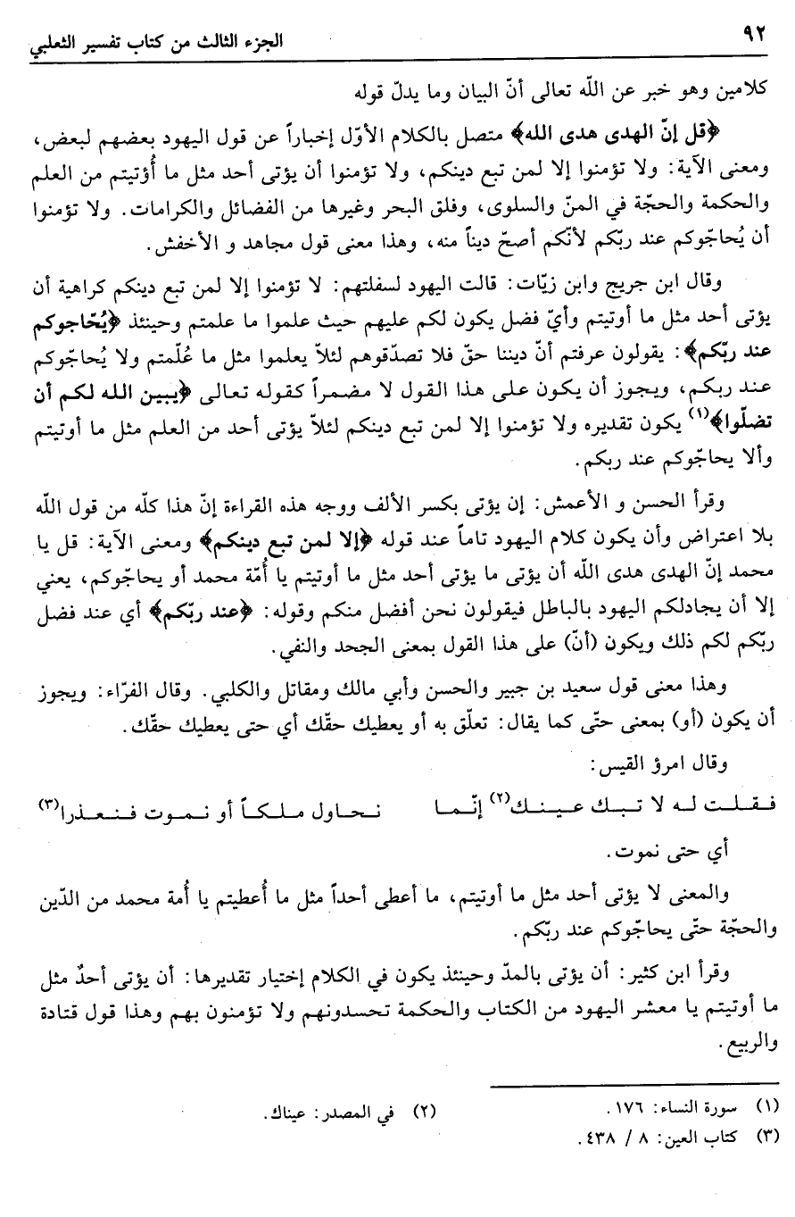 كتاب تفسير الثعلبي = الكشف والبيان عن تفسير القرآن (اسم الجزء: 3)
