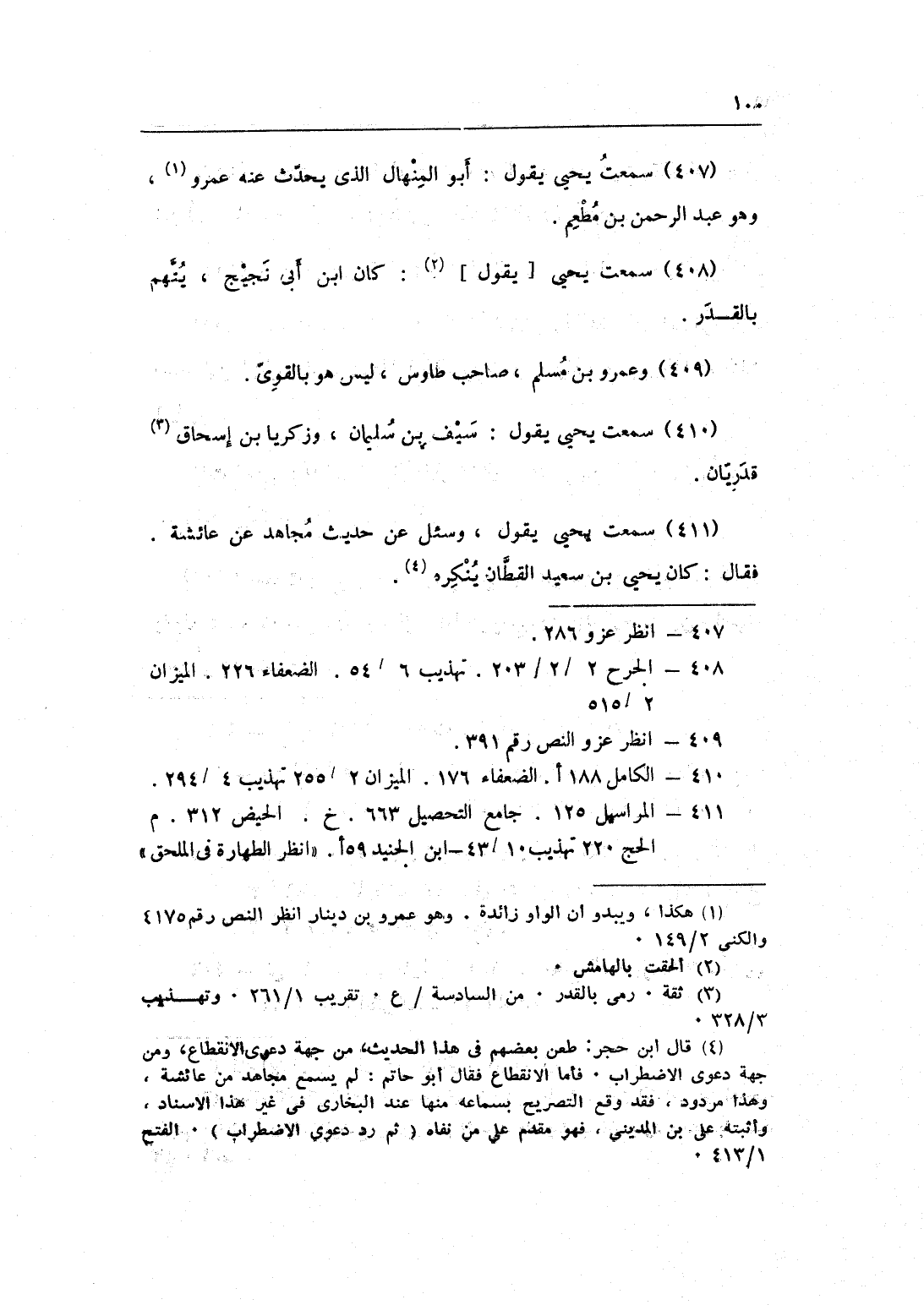 410 - سَمِعت يحيى يَقُول سيف بن سُلَيْمَان وزَكَرِيا بن إِسْحَاق قدريان