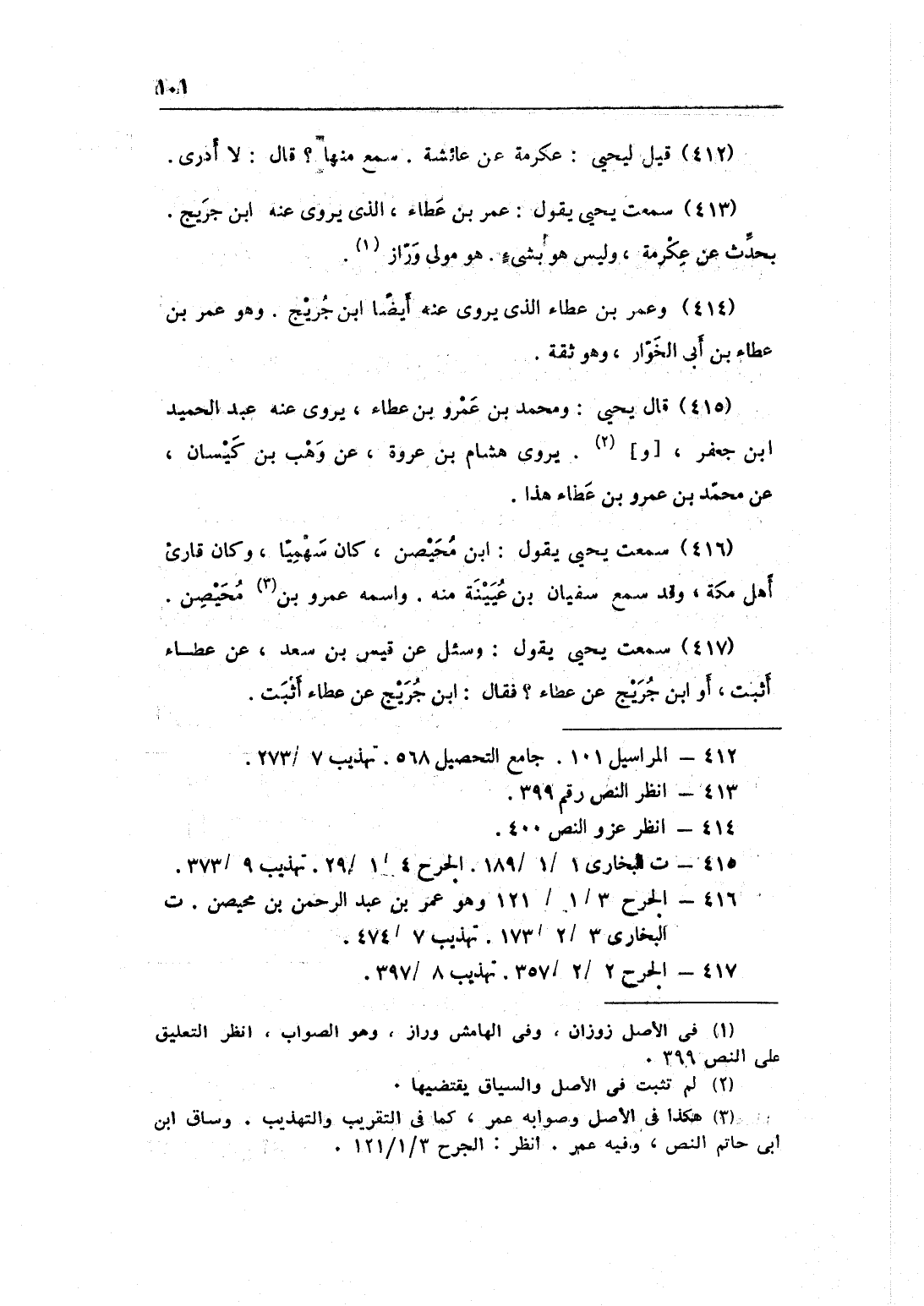 416 - سَمِعت يحيى يَقُول بن مُحَيْصِن كَانَ سهميا وَكَانَ قارىء أهل مَكَّة وَقد سمع سُفْيَان بن عُيَيْنَة مِنْهُ واسْمه عَمْرو بن مُحَيْصِن