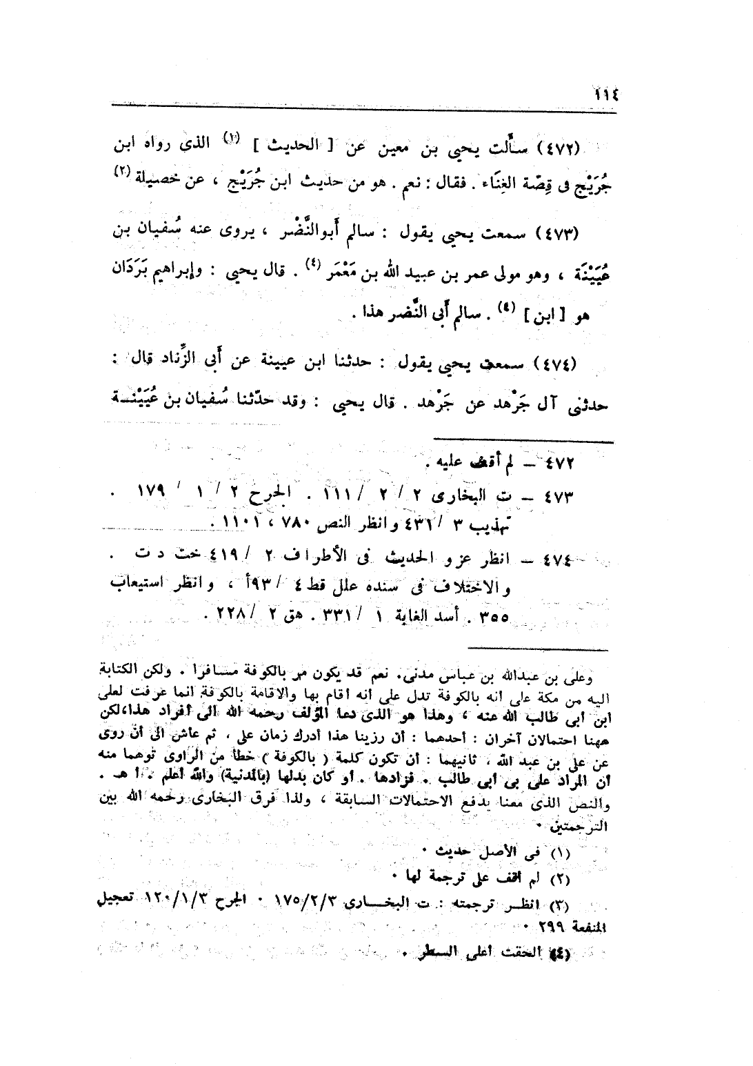 473 - سَمِعت يحيى يَقُول سَالم أَبُو النَّضر يرْوى عَنهُ سُفْيَان بن عُيَيْنَة وَهُوَ مولى عمر بن عبيد الله بن معمر قَالَ يحيى وَإِبْرَاهِيم بردَان هُوَ بن سَالم أَبى النَّضر هَذَا