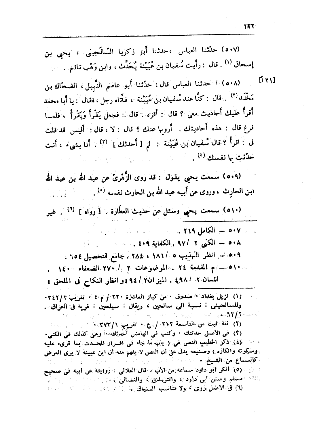 507 - حَدثنَا الْعَبَّاس حَدثنَا أَبُو زَكَرِيَّا السالحيني يحيى بن إِسْحَاق قَالَ رَأَيْت سُفْيَان بن عُيَيْنَة يحدث وَابْن وهب نَائِم