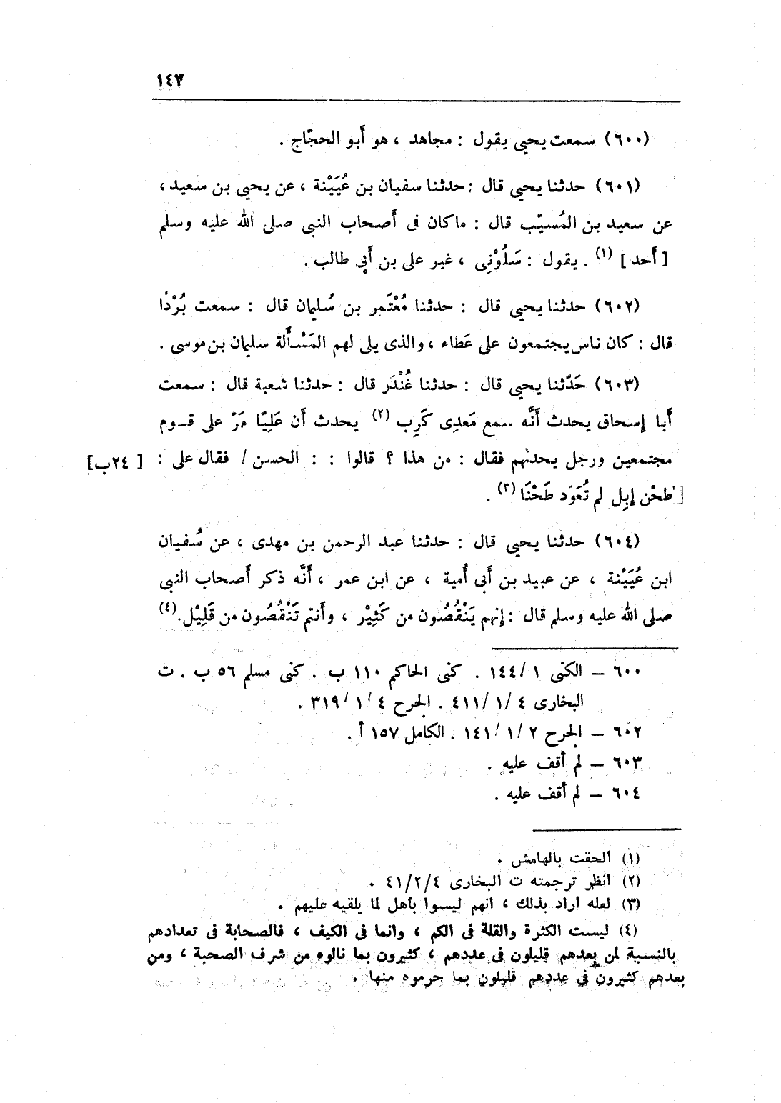 604 - حَدثنَا يحيى قَالَ حَدثنَا عبد الرَّحْمَن بن مهدى عَن سُفْيَان بن عُيَيْنَة عَن عبيد بن أَبى أُميَّة عَن بن عمر أَنه ذكر أَصْحَاب النَّبِي صلى الله عَلَيْهِ وَسلم قَالَ إِنَّهُم ينقصُونَ من كثير وَأَنْتُم تنقصون من قَلِيل
