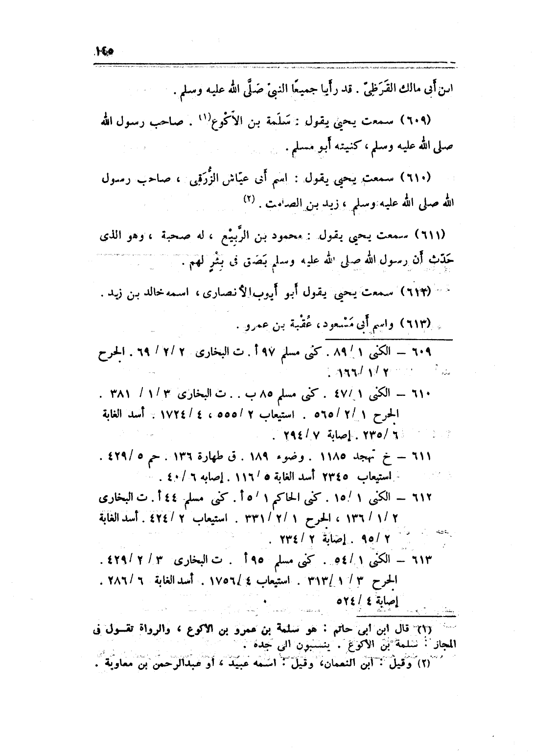 611 - سَمِعت يحيى يَقُول مَحْمُود بن الرّبيع لَهُ صُحْبَة وَهُوَ الَّذِي حدث أَن رَسُول الله صلى الله عَلَيْهِ وَسلم بَصق فِي بِئْر لَهُم