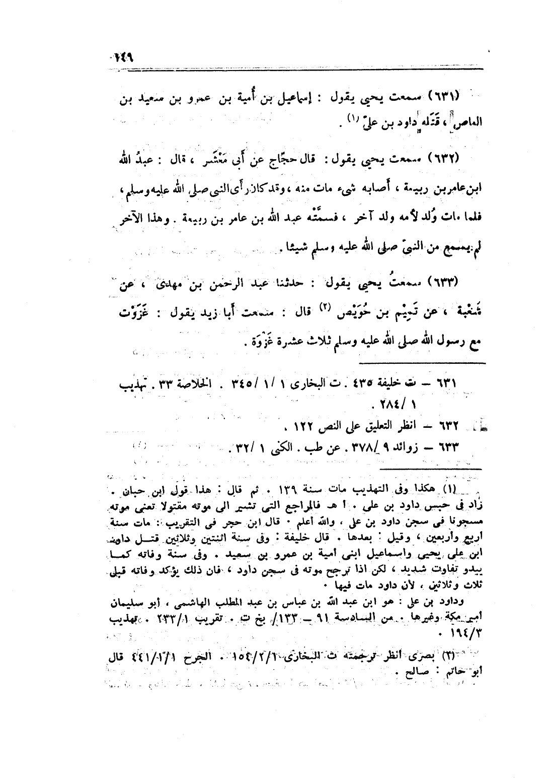 631 - سَمِعت يحيى يَقُول إِسْمَاعِيل بن أُميَّة بن عَمْرو بن سعيد بن الْعَاصِ قَتله دَاوُد بن على