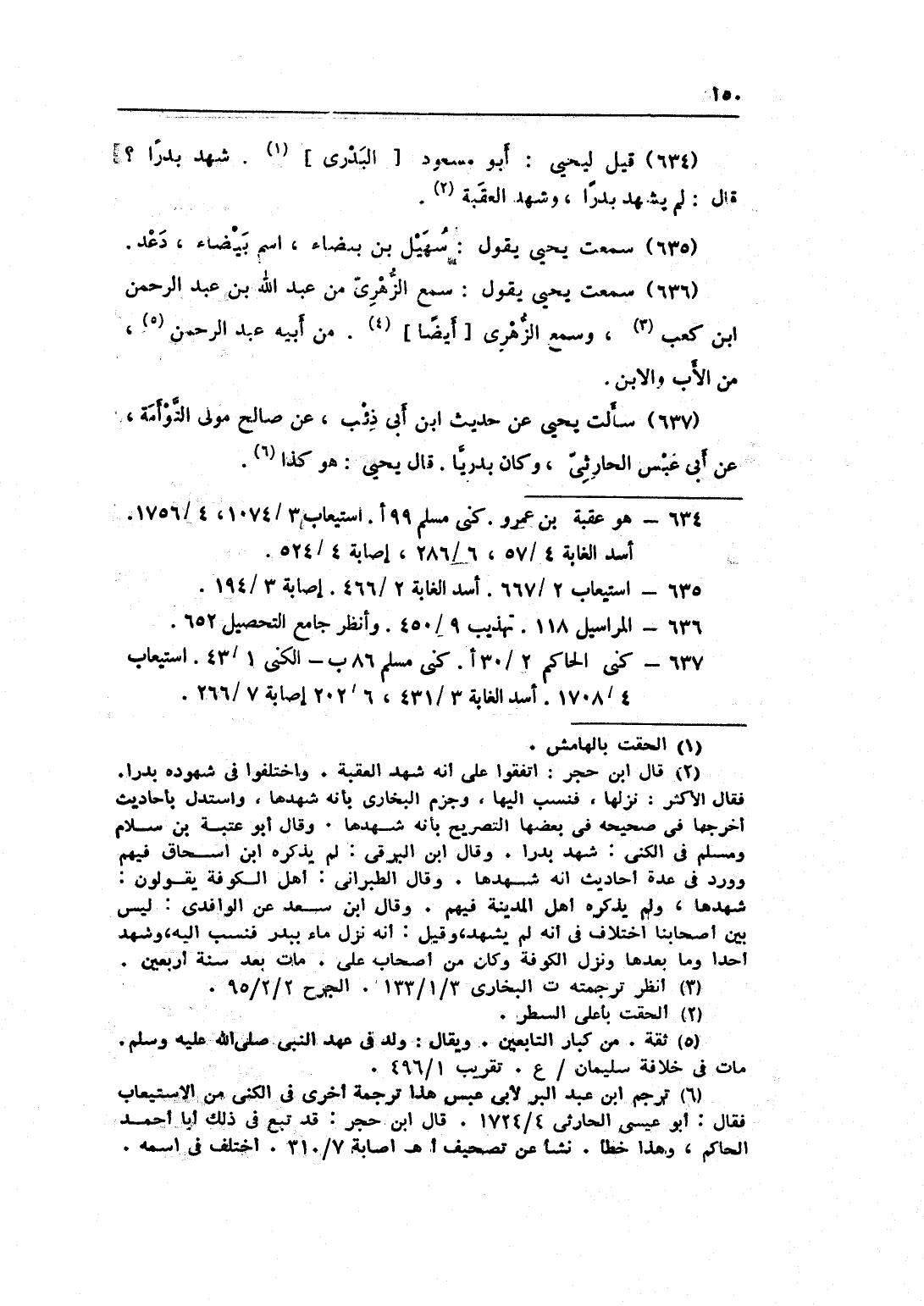 637 - سَأَلت يحيى عَن حَدِيث بن أَبى ذِئْب عَن صَالح مولى التَّوْأَمَة عَن أَبى عبس الحارثى وَكَانَ بَدْرِيًّا قَالَ يحيى هُوَ كَذَا