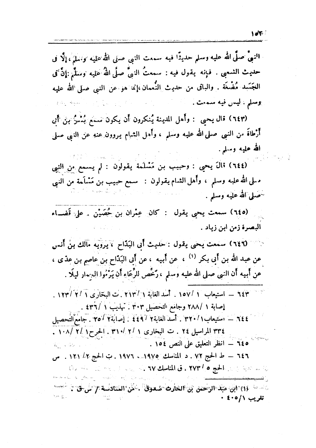 643 - قَالَ يحيى وَأهل الْمَدِينَة يُنكرُونَ أَن يكون سمع بسر بن أَبى أَرْطَاة من النَّبِي صلى الله عَلَيْهِ وَسلم وَأهل الشَّام يروون عَنهُ عَن النَّبِي صلى الله عَلَيْهِ وَسلم
