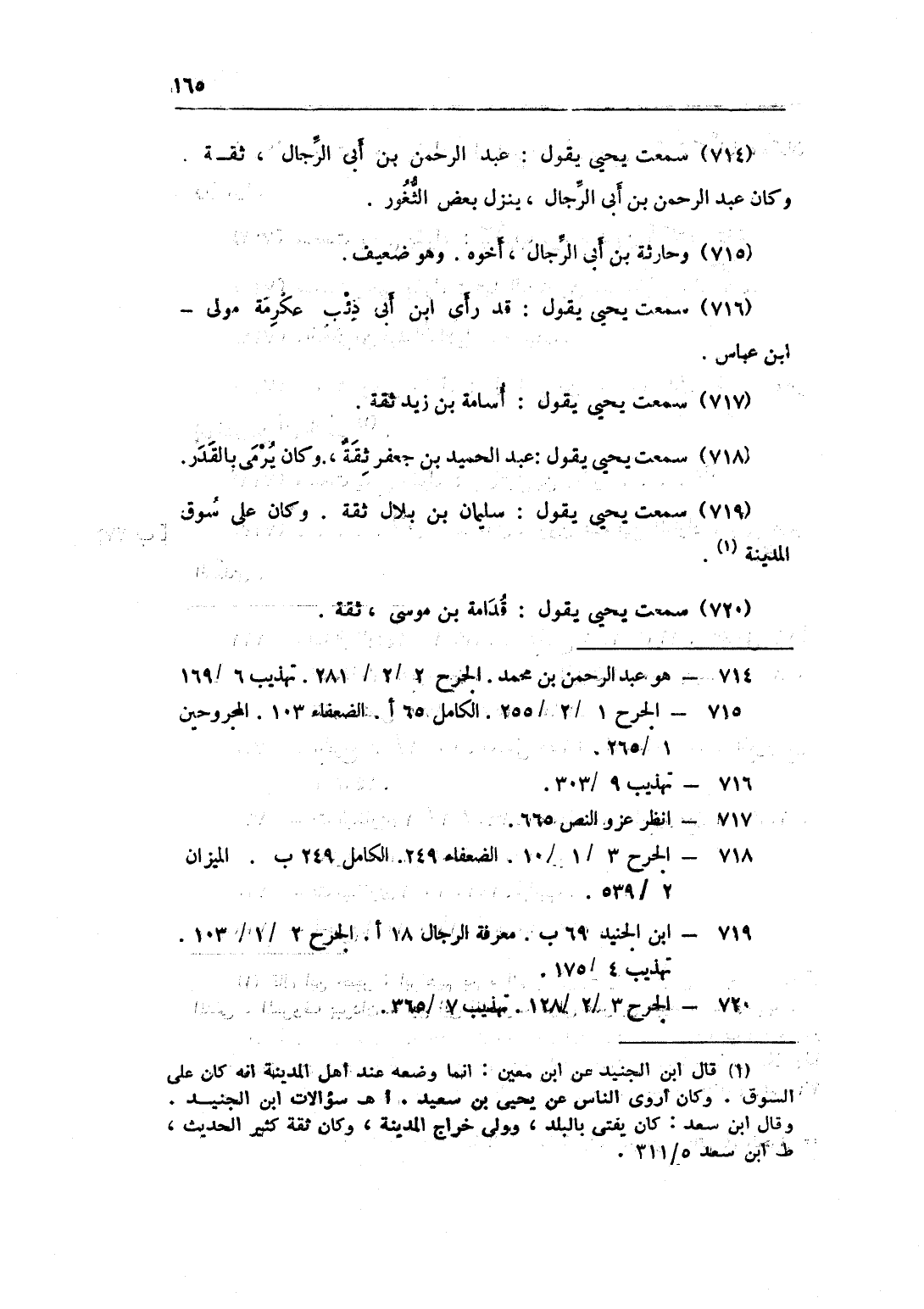 714 - سَمِعت يحيى يَقُول عبد الرَّحْمَن بن أَبى الرِّجَال ثِقَة وَكَانَ عبد الرَّحْمَن بن أَبى الرِّجَال ينزل بعض الثغور