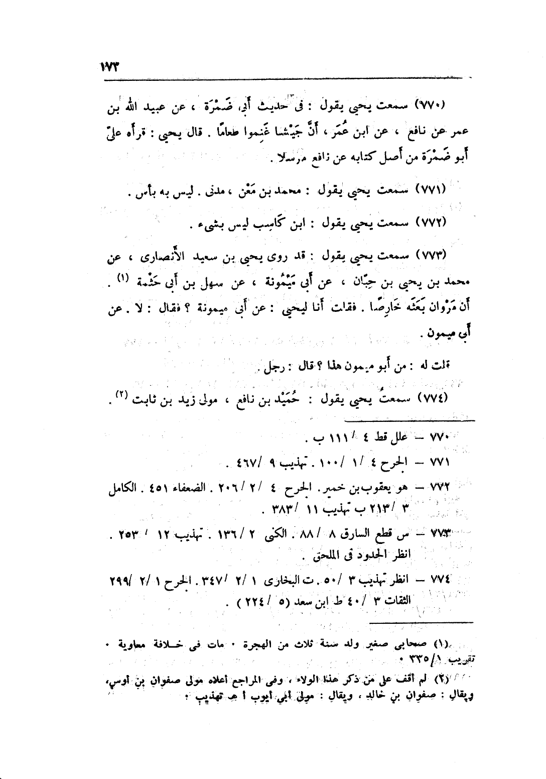 774 - سَمِعت يحيى يَقُول حميد بن نَافِع مولى زيد بن ثَابت