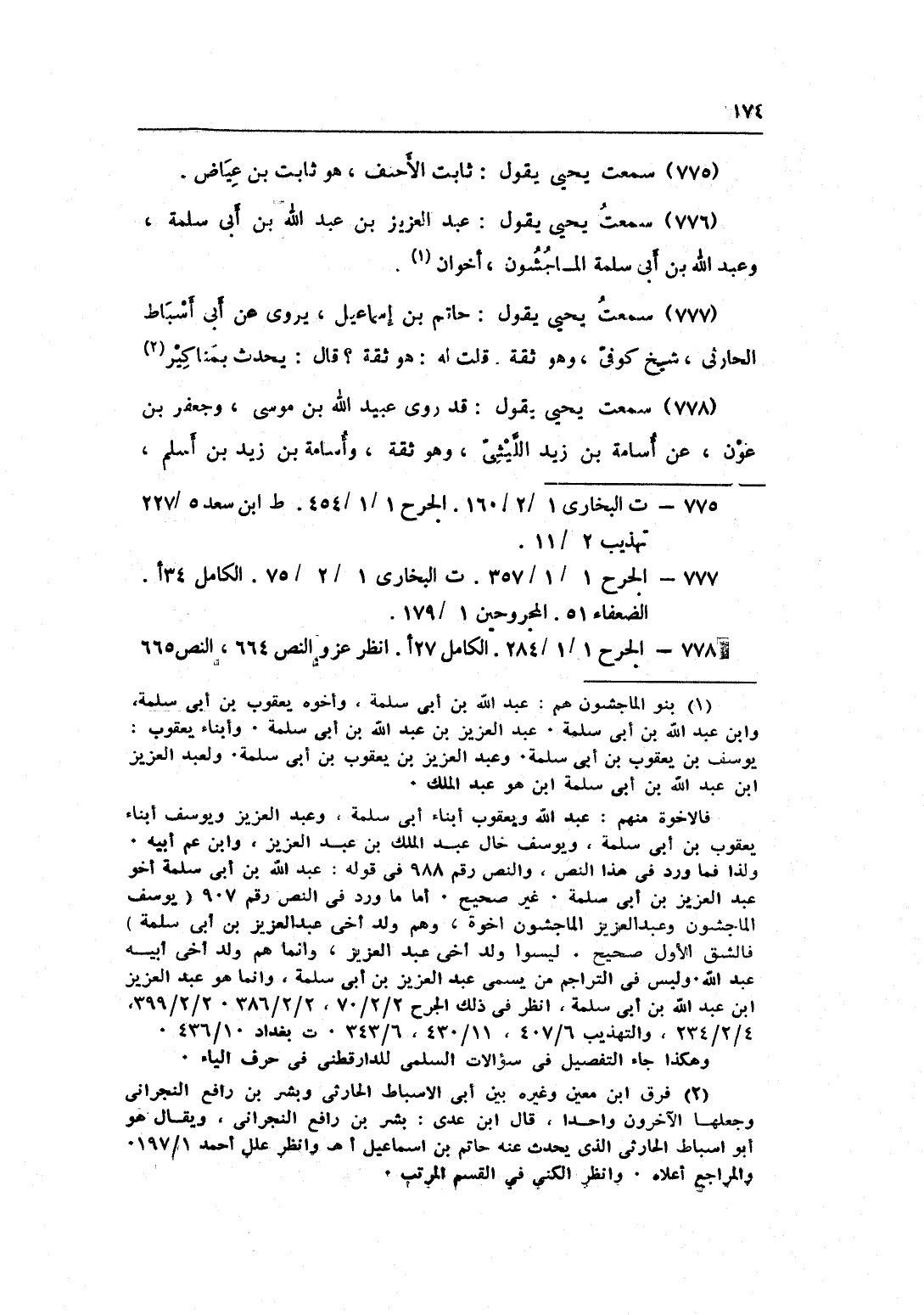 776 - سَمِعت يحيى يَقُول عبد الْعَزِيز بن عبد الله بن أَبى سَلمَة وَعبد الله بن أَبى سَلمَة الْمَاجشون أَخَوان