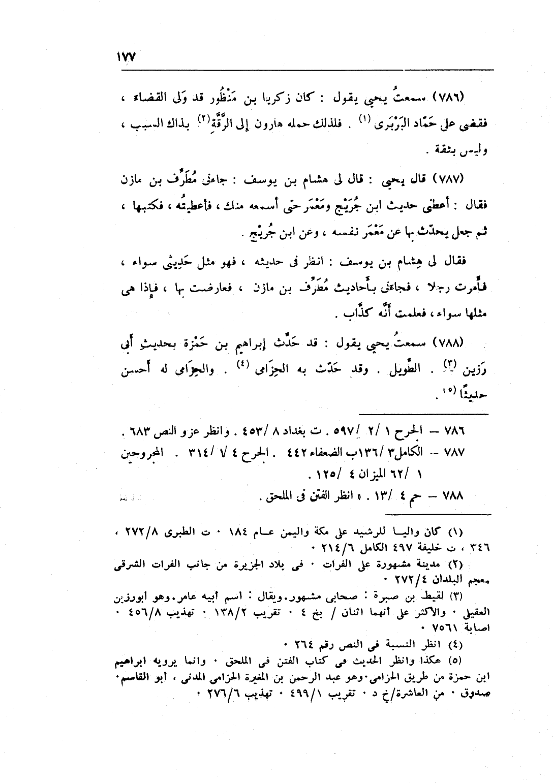 786 - سَمِعت يحيى يَقُول كَانَ زَكَرِيَّا بن مَنْظُور قد ولى الْقَضَاء فَقضى على حَمَّاد الْبَرْبَرِي فَلذَلِك حمله هَارُون إِلَى الرقة بِذَاكَ السَّبَب وَلَيْسَ بِثِقَة