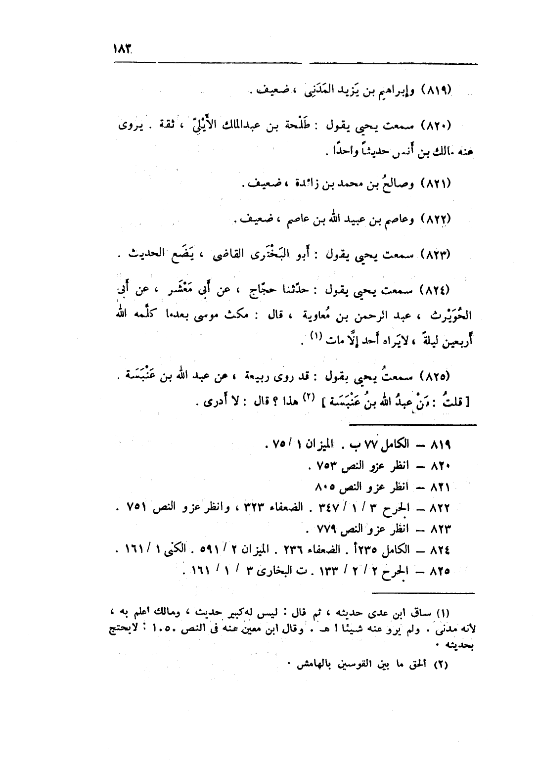 825 - سَمِعت يحيى يَقُول قد روى ربيعَة عَن عبد الله بن عَنْبَسَة قلت من عبد الله بن عَنْبَسَة هَذَا قَالَ لَا أدرى