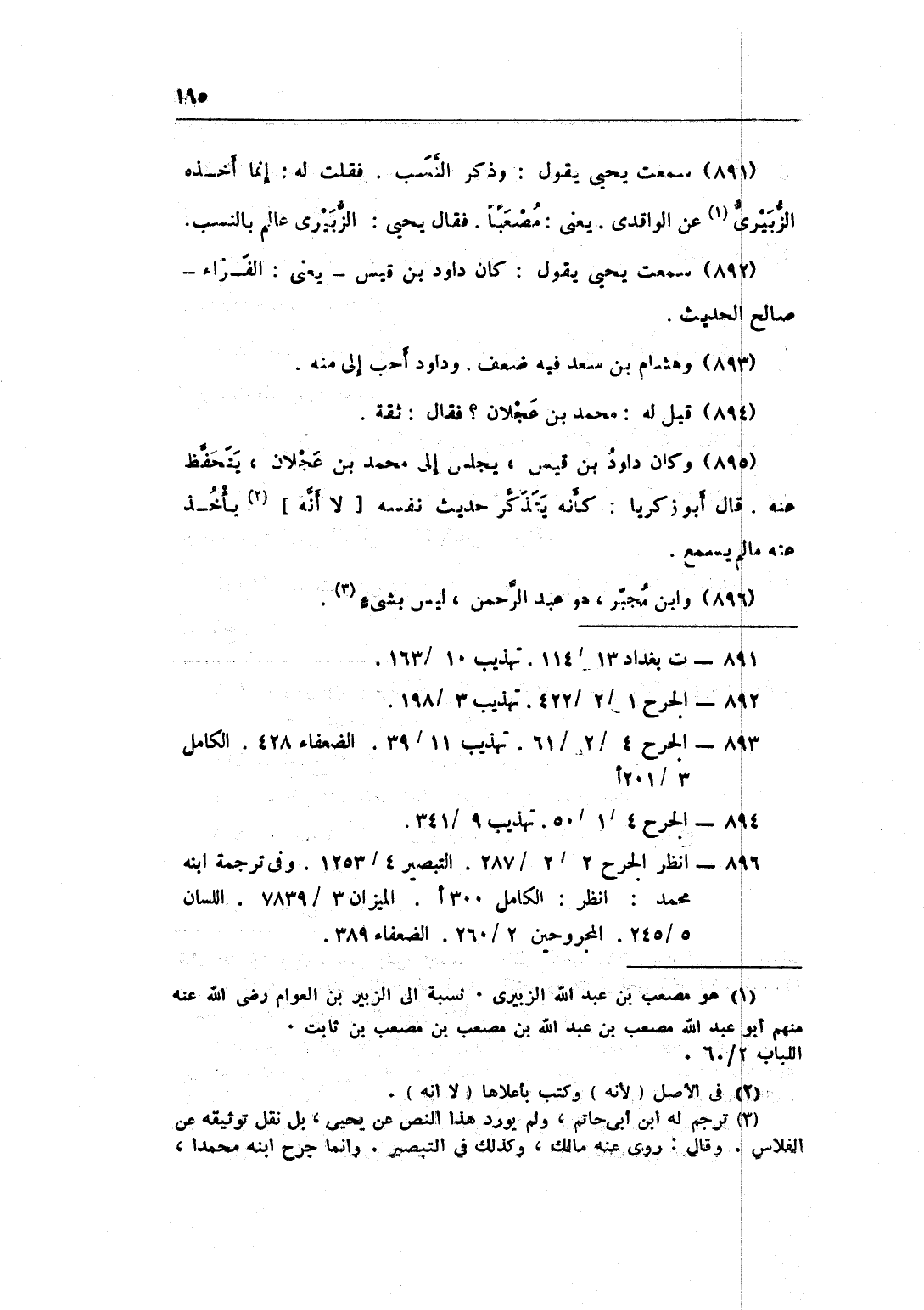 891 - سَمِعت يحيى يَقُول وَذكر النّسَب فَقلت لَهُ إِنَّمَا أَخذه الزبيرِي عَن الْوَاقِدِيّ يعْنى مصعبا فَقَالَ يحيى الزبيرِي عَالم بِالنّسَبِ