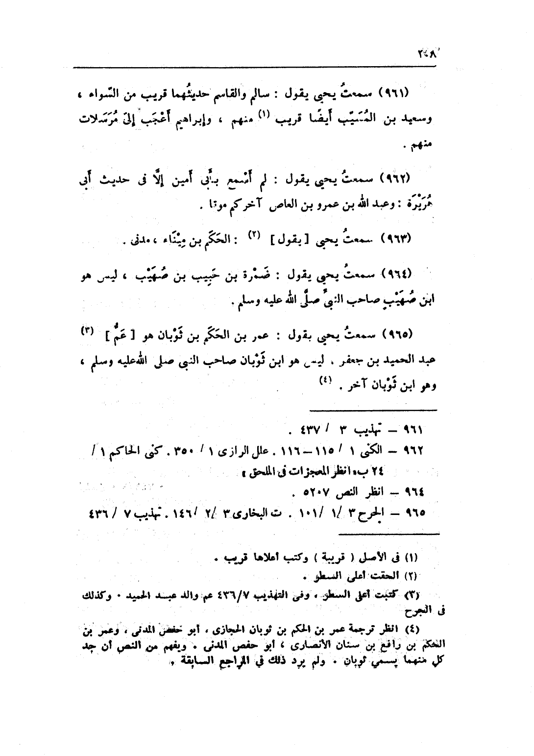 964 - سَمِعت يحيى يَقُول ضَمرَة بن حبيب بن صُهَيْب لَيْسَ هُوَ بن صُهَيْب صَاحب النَّبِي صلى الله عَلَيْهِ وَسلم