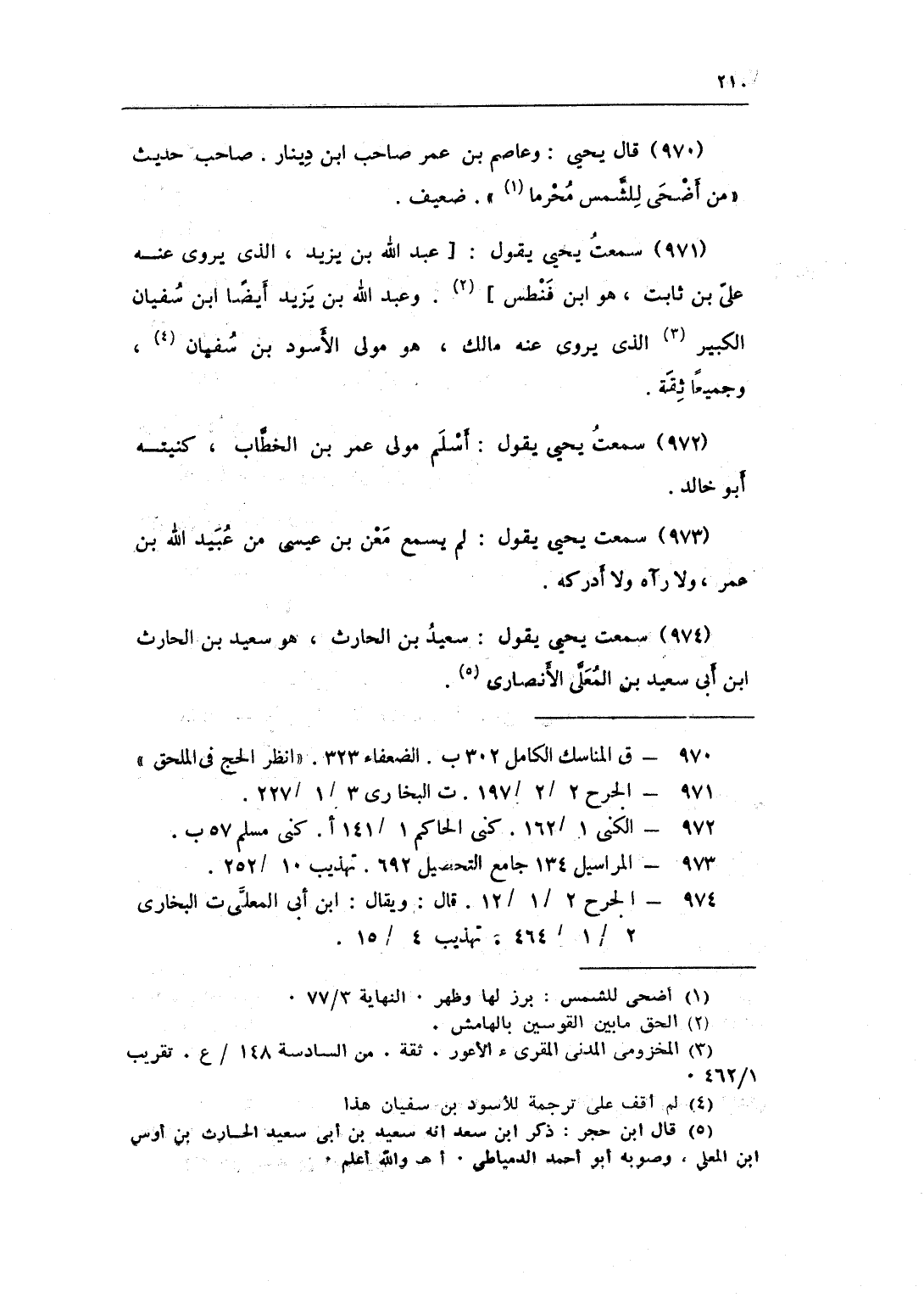 972 - سَمِعت يحيى يَقُول أسلم مولى عمر بن الْخطاب كنيته أَبُو خَالِد