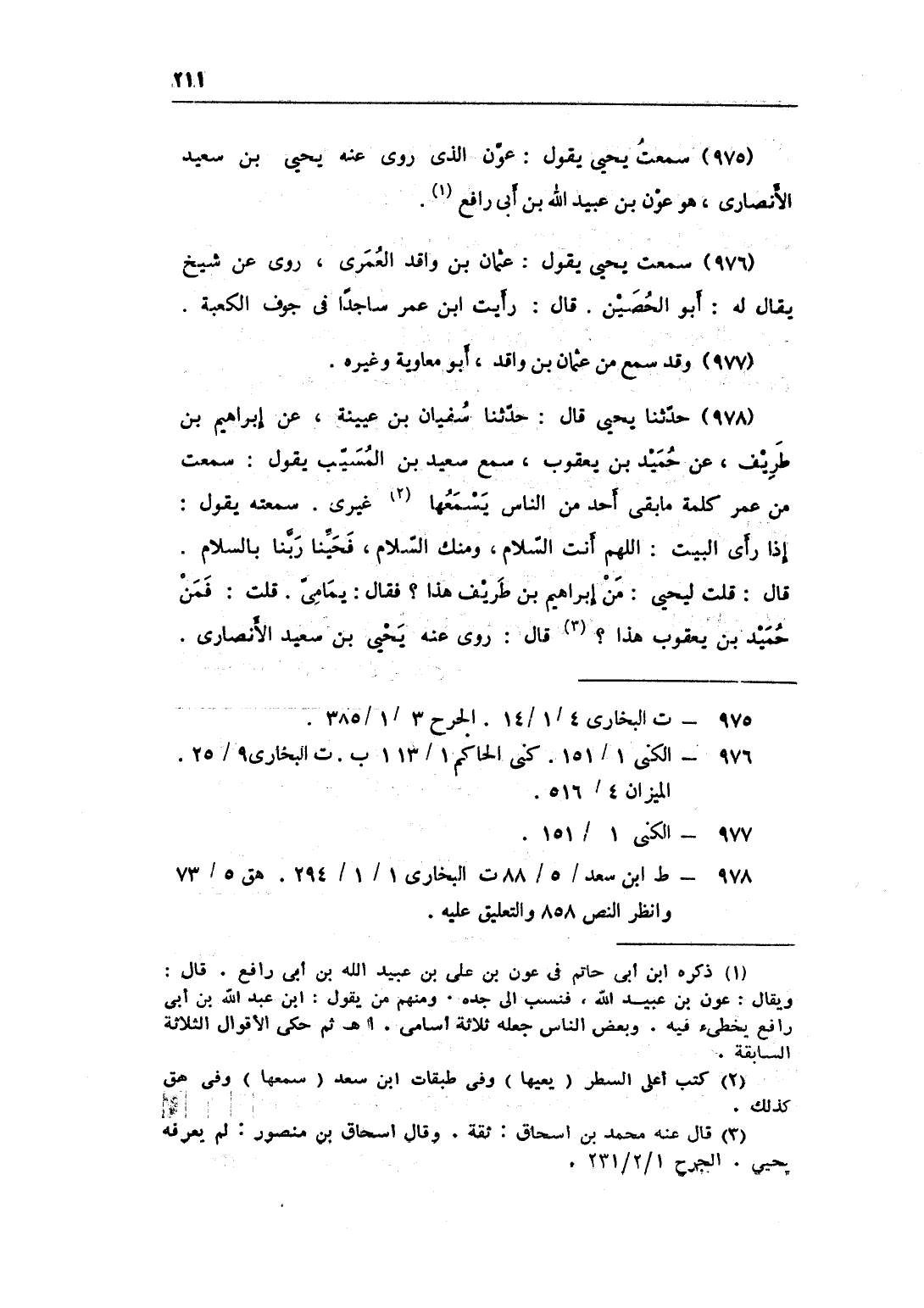 975 - سَمِعت يحيى يَقُول عون الَّذِي روى عَنهُ يحيى بن سعيد الْأنْصَارِيّ هُوَ عون بن عبيد الله بن أَبى رَافع