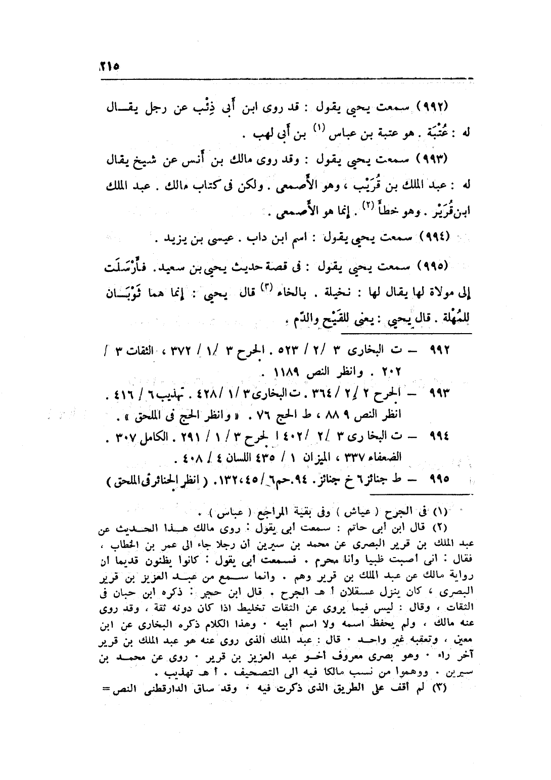 993 - سَمِعت يحيى يَقُول وَقد روى مَالك بن أنس عَن شيخ يُقَال لَهُ عبد الْملك بن قريب وَهُوَ الْأَصْمَعِي وَلَكِن فِي كتاب مَالك عبد الْملك بن قرير وَهُوَ خطأ إِنَّمَا هُوَ الْأَصْمَعِي
