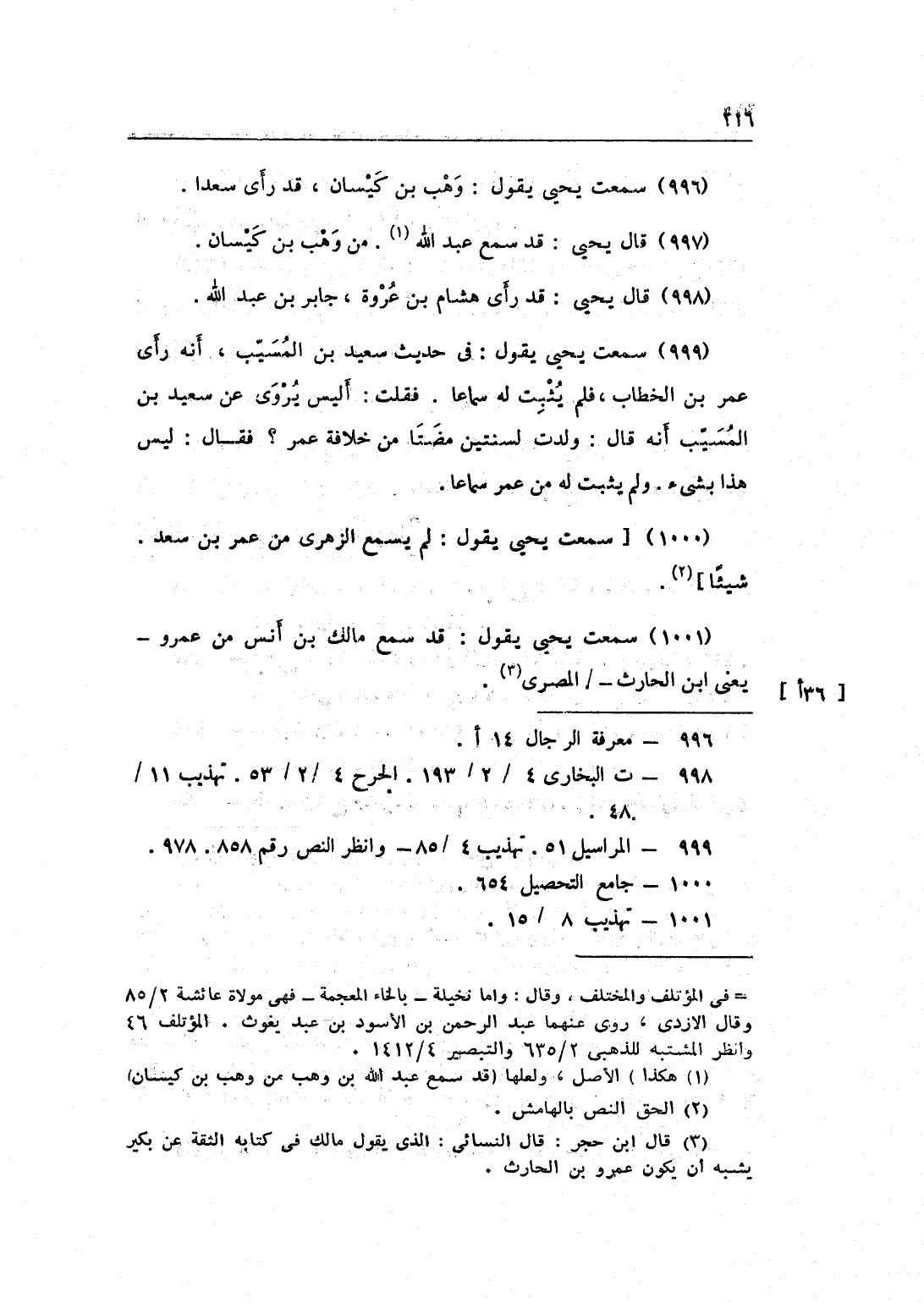 1001 - سَمِعت يحيى يَقُول قد سمع مَالك بن أنس من عَمْرو يعْنى بن الْحَارِث الْمصْرِيّ