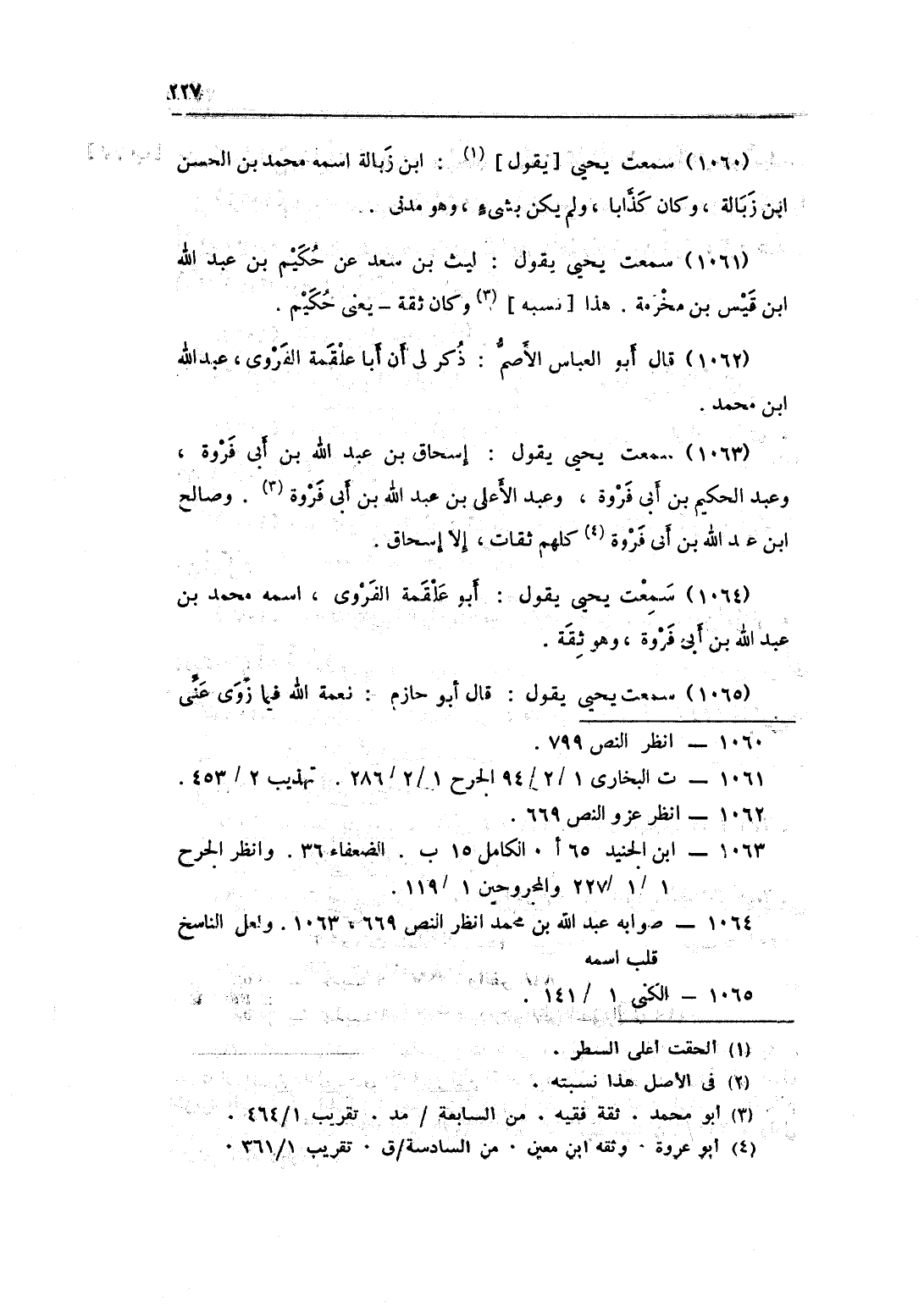 1060 - سَمِعت يحيى يَقُول بن زبالة اسْمه مُحَمَّد بن الْحسن بن زبالة وَكَانَ كذابا وَلم يكن بِشَيْء وَهُوَ مدنِي