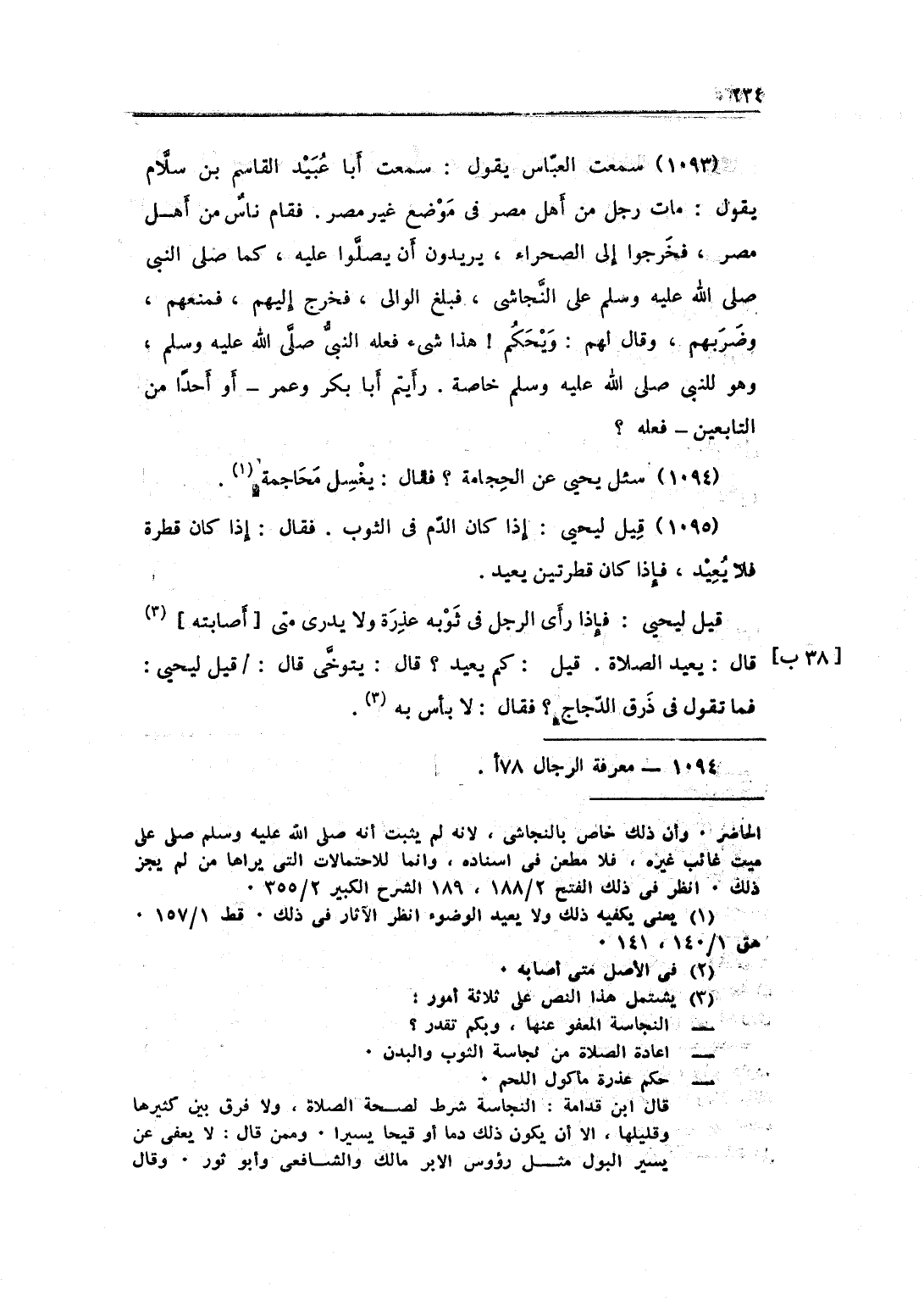1093 - سَمِعت الْعَبَّاس يَقُول سَمِعت أَبَا عبيد الْقَاسِم بن سَلام يَقُول مَاتَ رجل من أهل مصر فِي مَوضِع غير مصر فَقَامَ نَاس من أهل مصر فَخَرجُوا إِلَى الصَّحرَاء يُرِيدُونَ أَن يصلوا عَلَيْهِ كَمَا صلى النَّبِي عَلَيْهِ وَسلم على النَّجَاشِيّ فَبلغ الوالى فَخرج إِلَيْهِم فَمَنعهُمْ وضربهم وَقَالَ لَهُم وَيحكم هَذَا شَيْء فعله النَّبِي صلى الله عَلَيْهِ وَسلم وَهُوَ للنَّبِي صلى الله عَلَيْهِ وَسلم خَاصَّة رَأَيْتُمْ أَبَا بكر وَعمر أَو أحدا من التَّابِعين فعله
